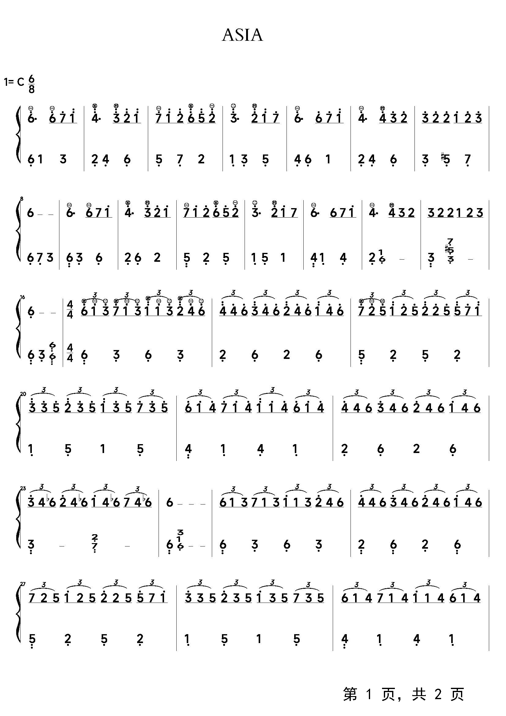 作品分类:流行钢琴简谱