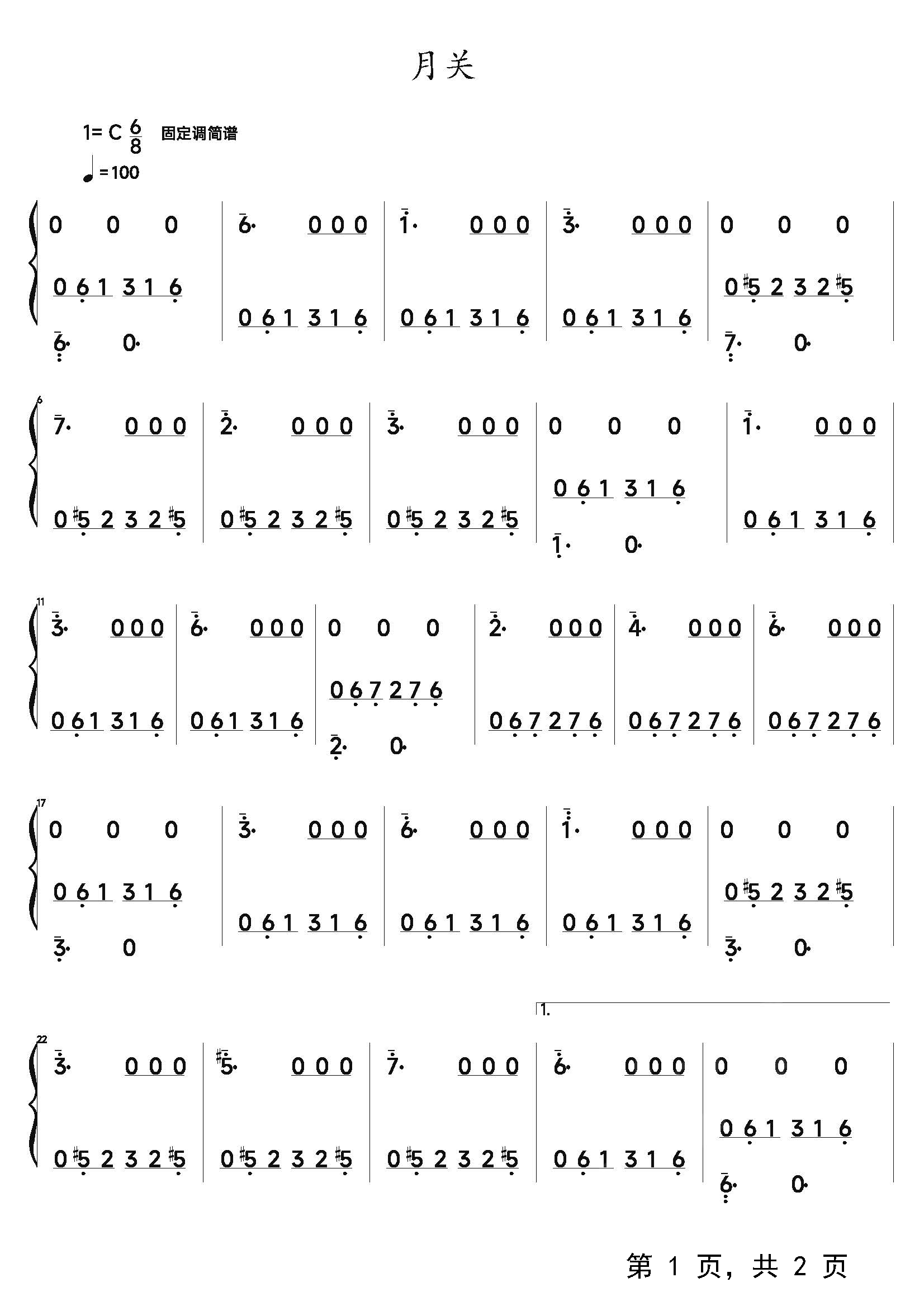 月光钢琴谱-胡彦斌-C调-流行钢琴简谱