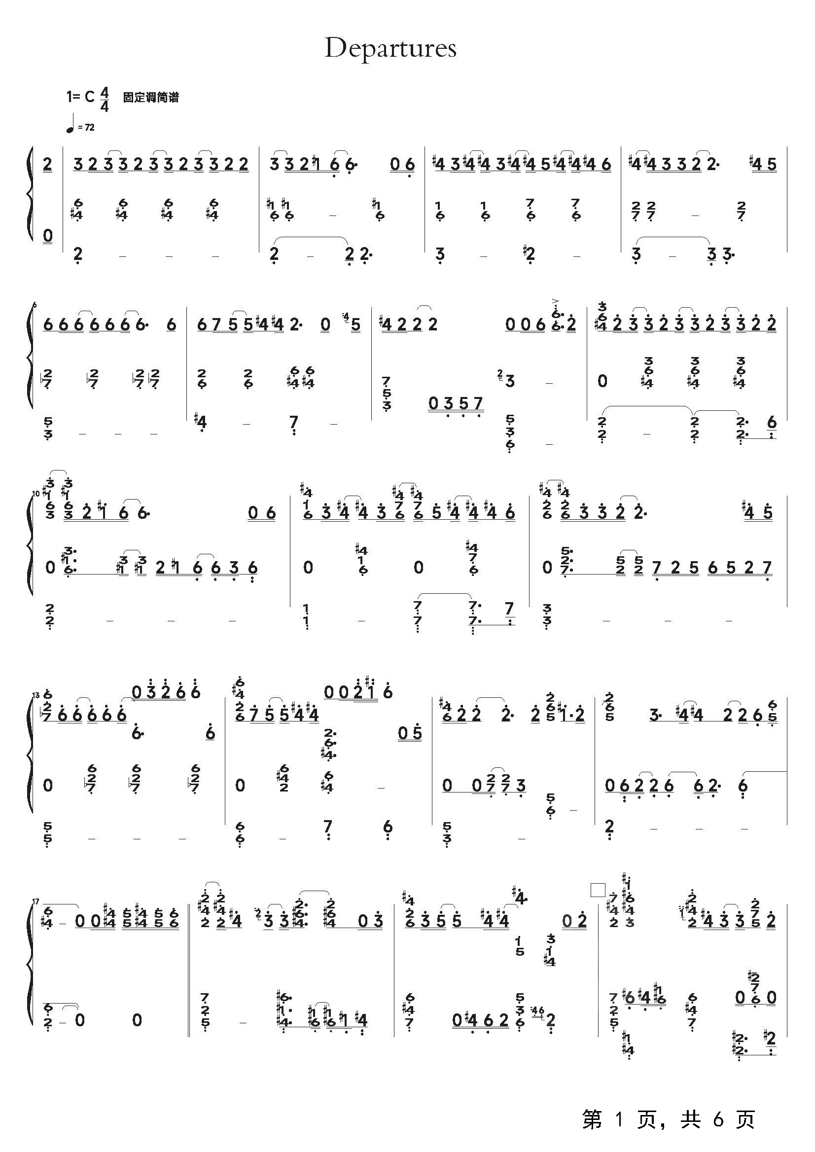 作品分类:流行钢琴简谱