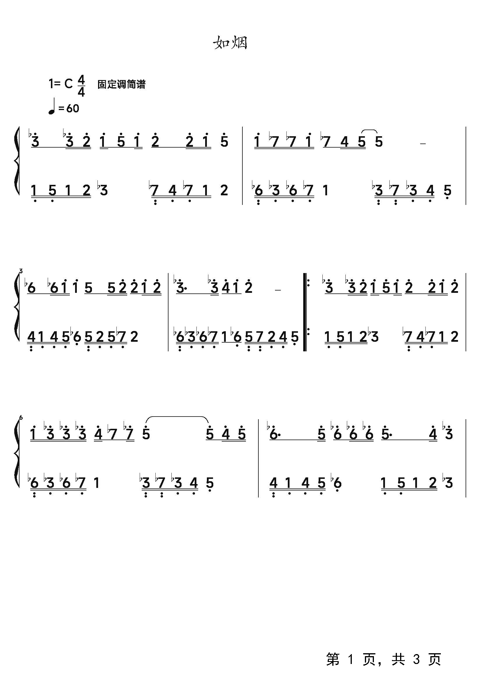 作品分类:流行钢琴简谱