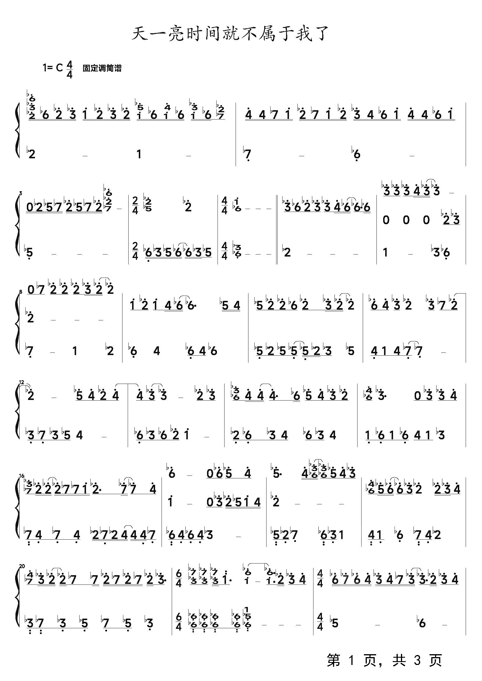 作品分类:流行钢琴简谱