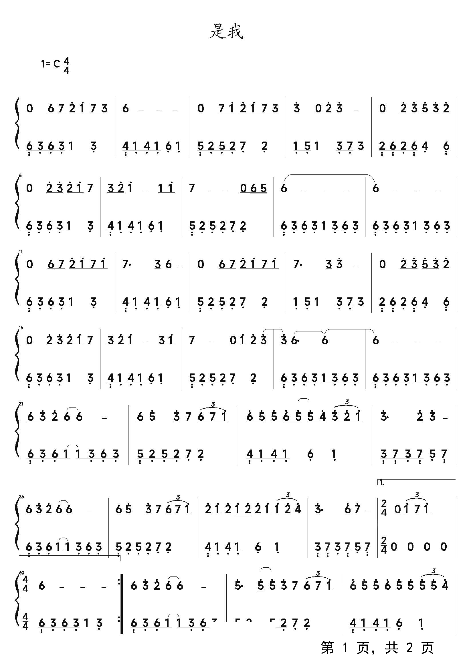 作品分类:流行钢琴简谱