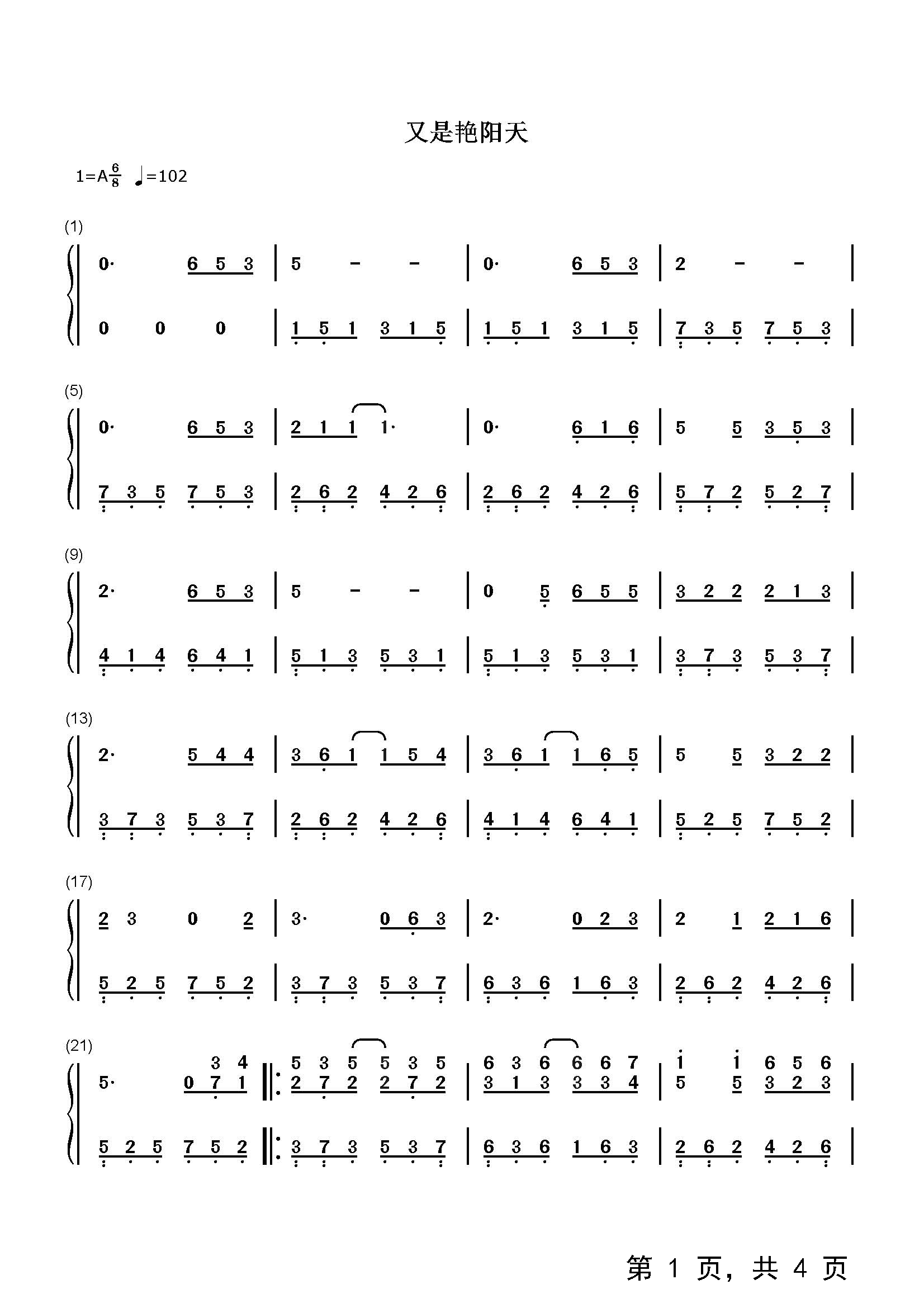 《又是艳阳天》是郭静、韦礼安演唱的节奏蓝调歌曲,由韦礼安作词、作曲,黄中岳编曲,收录于郭静的第五张专辑《陪着我的时候想着她》中,于2011年8月25日随专辑通过福茂唱片发行。《又是艳阳天》是首甜蜜的情歌,歌中描画出的是那份恋人间情投意合的俏皮意气,歌词描绘了一段青涩又真挚的心动过程。在该曲中,郭静和韦礼安两人通过优美的和声以及互补互动的声线,丰富了歌曲的立体表现力,同时也唱出了“爱情橘子”的酸甜感。2011年12月31日,郭静、韦礼安于2012新竹跨年演唱会中演唱该曲;2013年11月21日,郭静、李唯枫于《风尚志》七周年颁奖盛典中演唱了该曲。