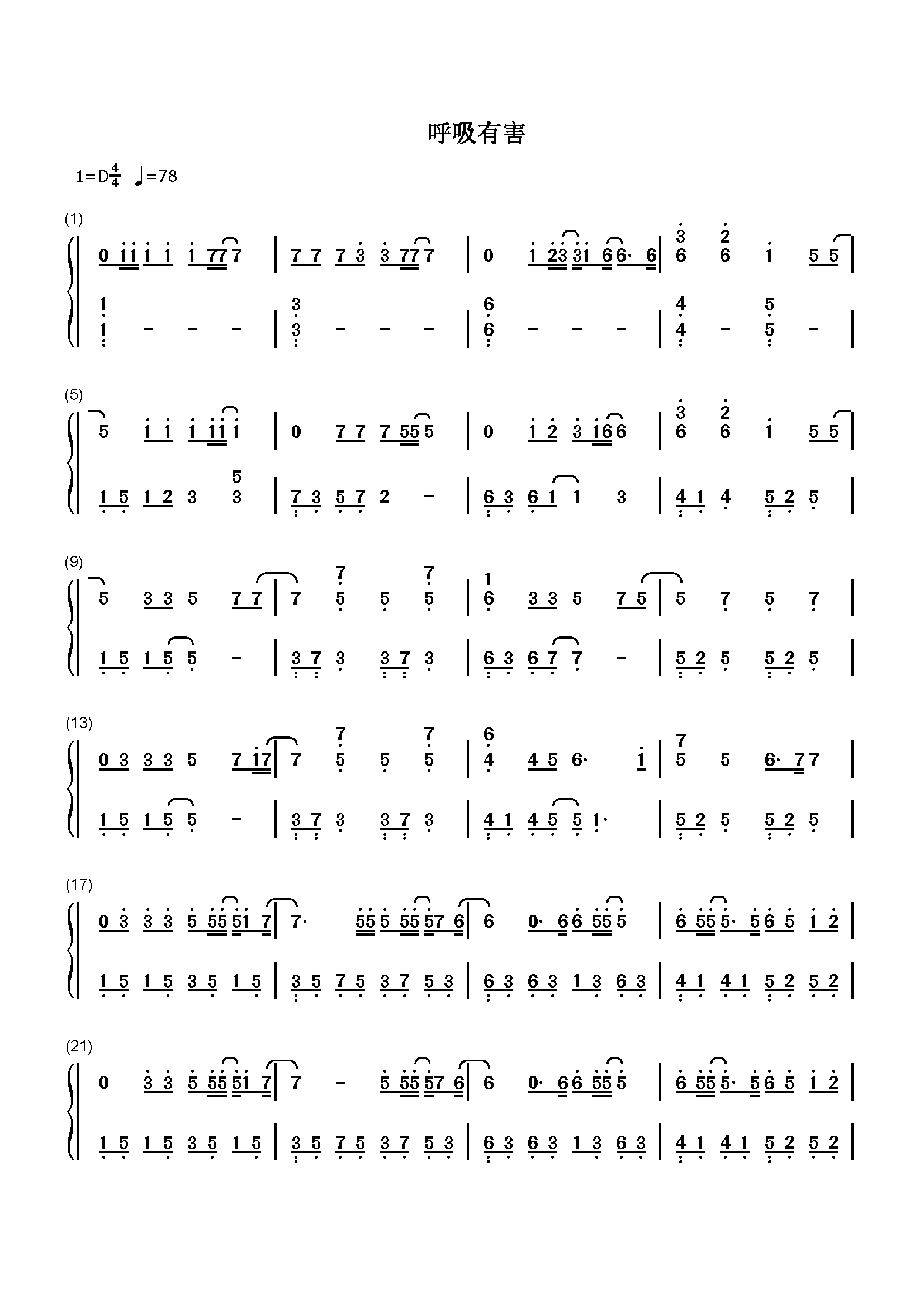 作品价格:呼吸有害钢琴谱,呼吸有害钢琴简谱,呼吸有害独奏谱元
