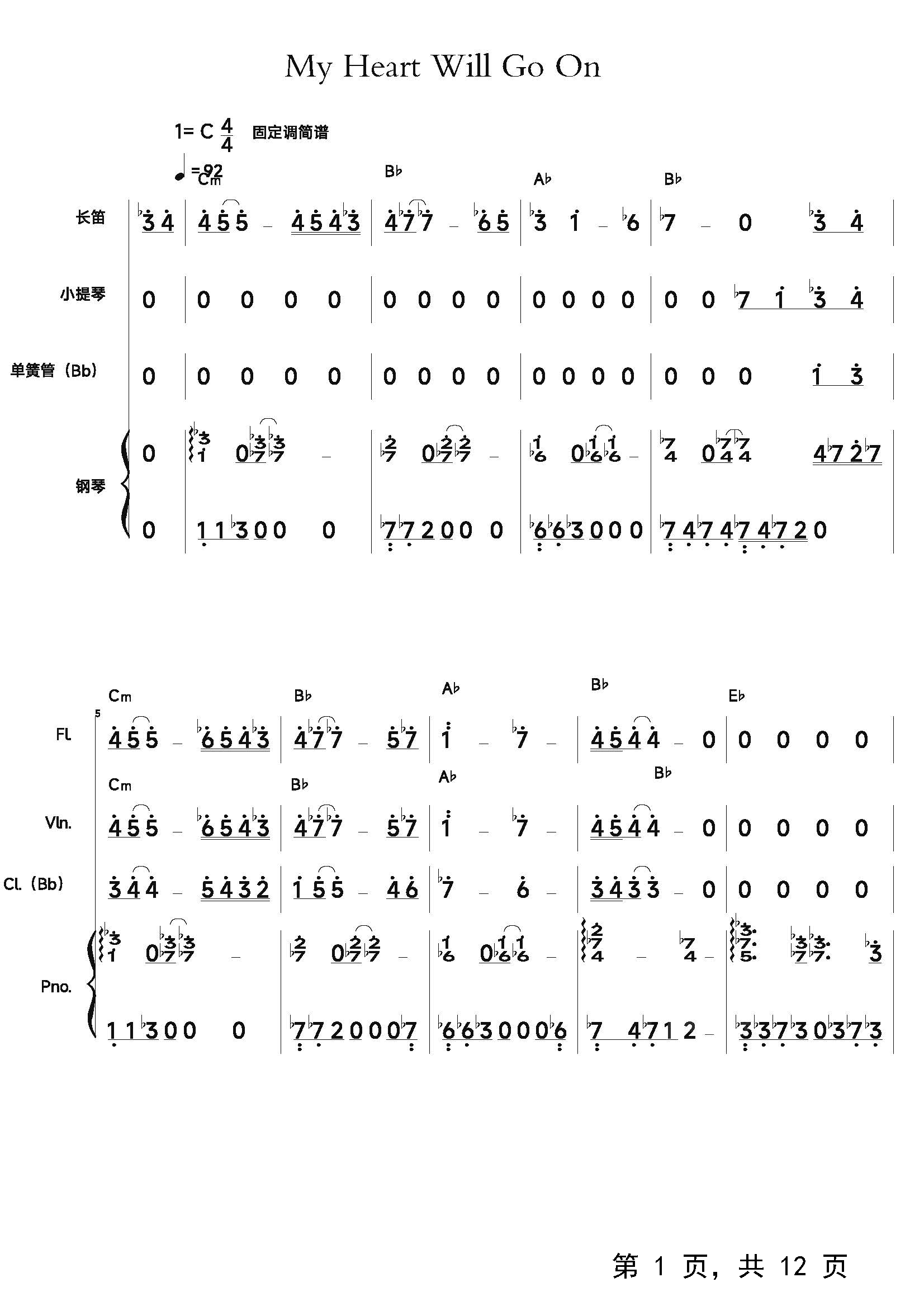 My Heart Will Go On钢琴谱-席琳·迪翁-C调-流行钢琴简谱