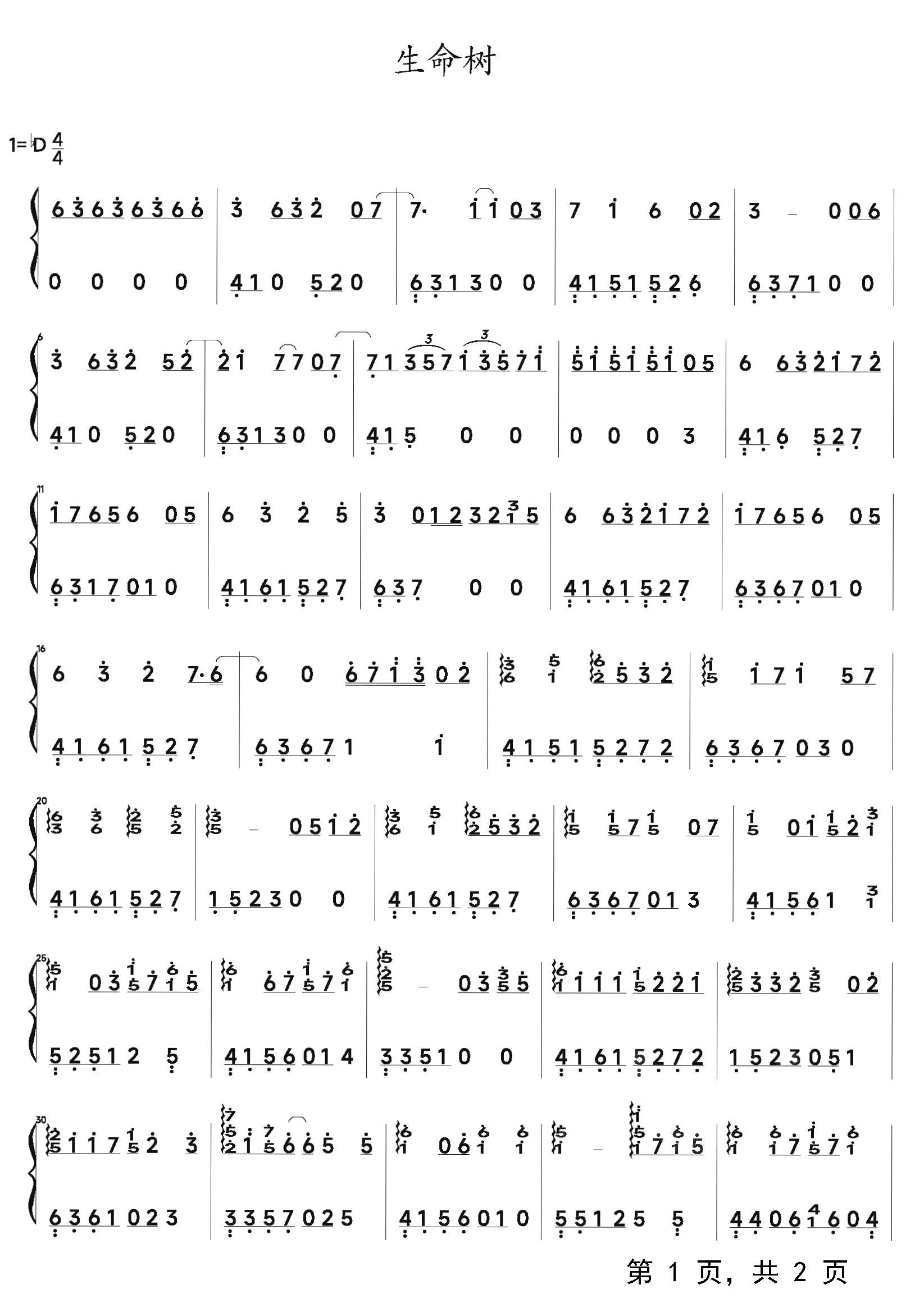 作品分类:流行钢琴简谱