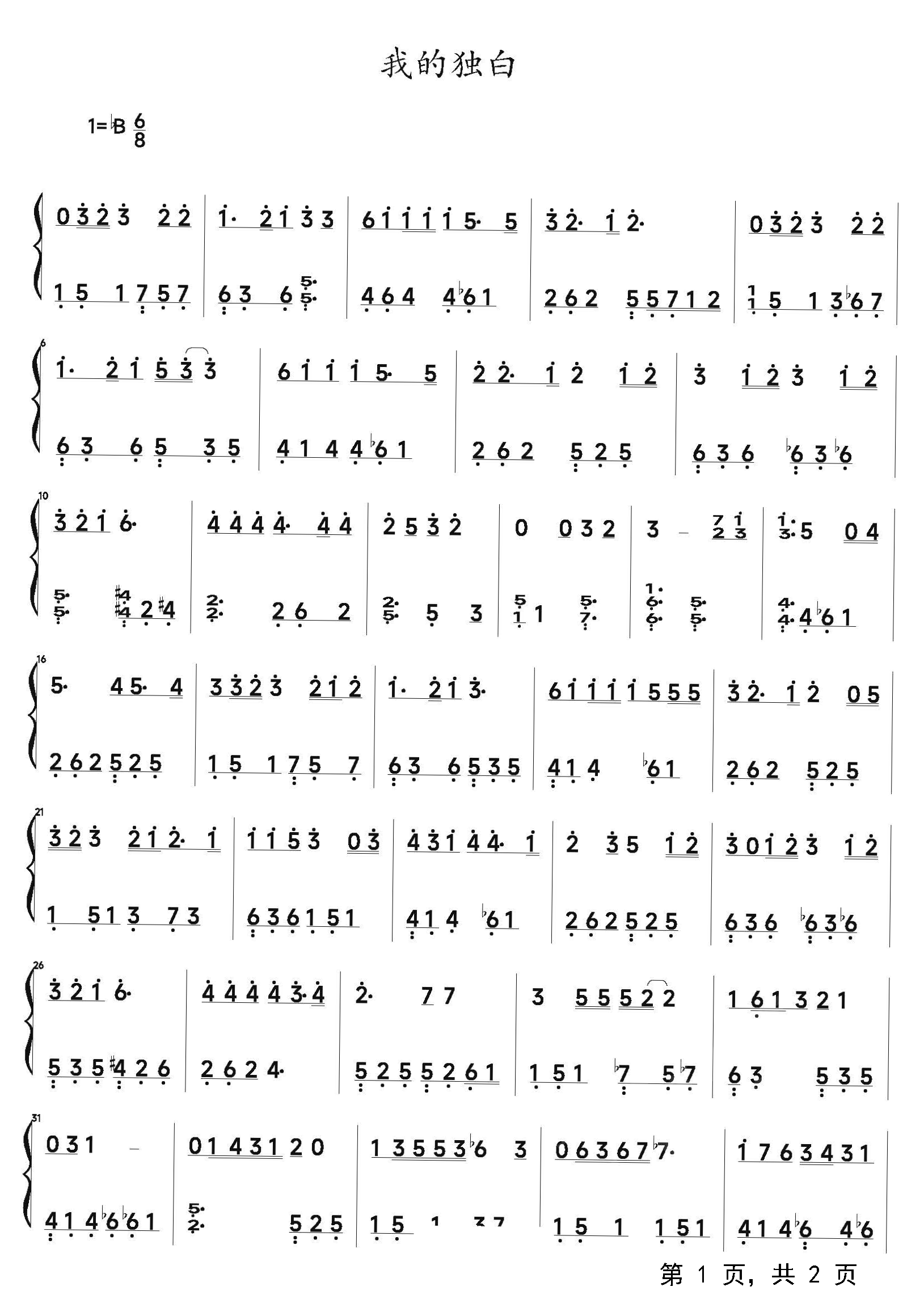 作品分类:流行钢琴简谱
