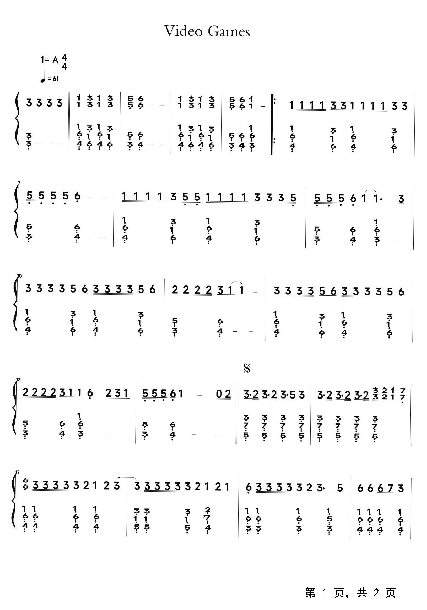 作品分类:流行钢琴简谱