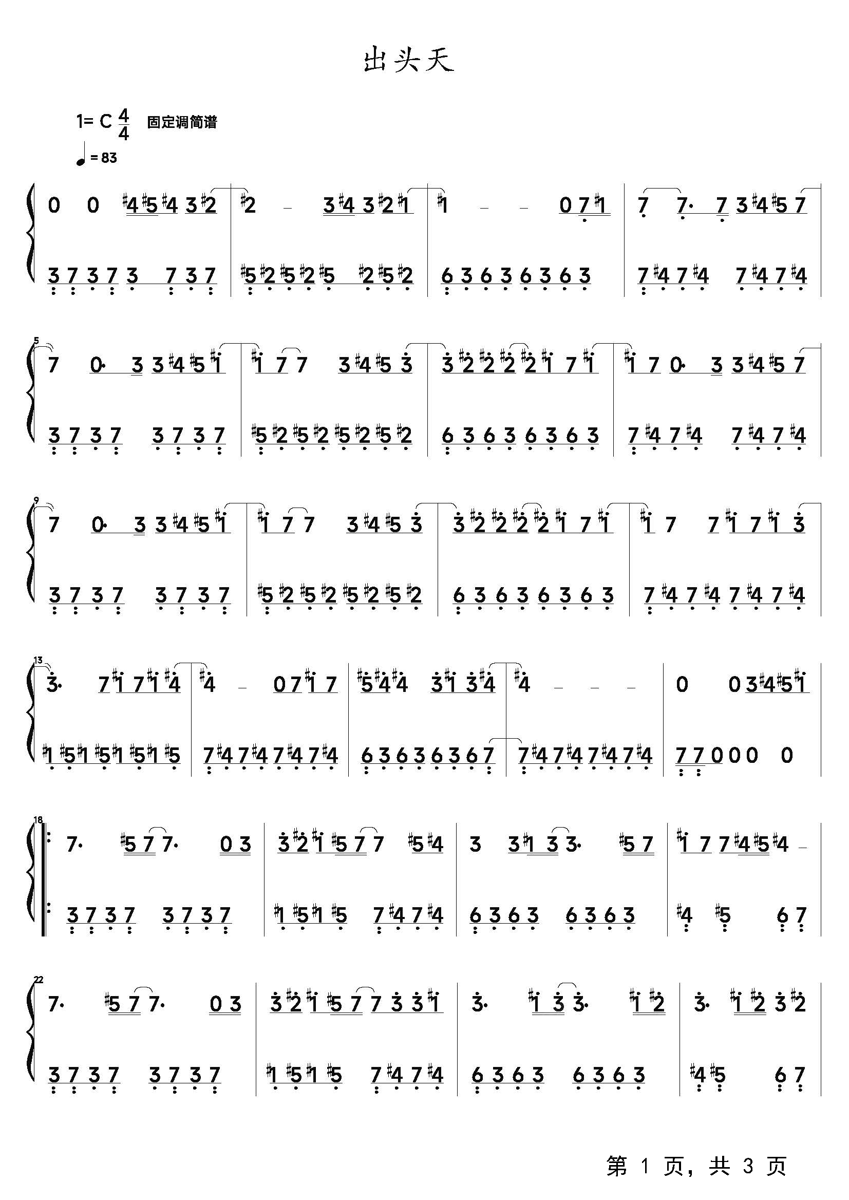 作品分类:流行钢琴简谱