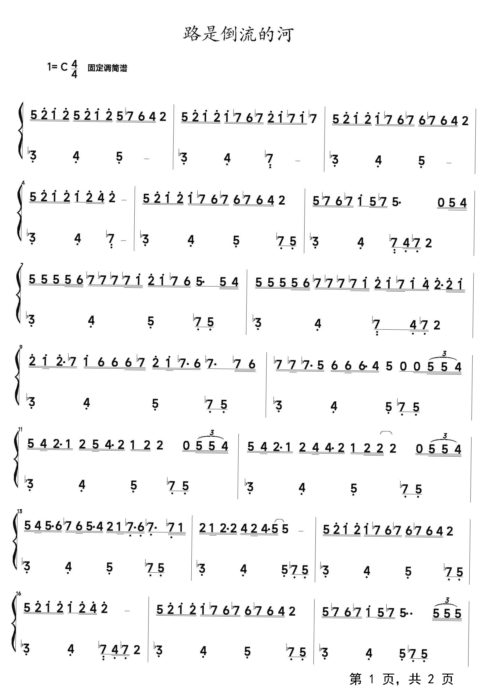 作品分类:流行钢琴简谱