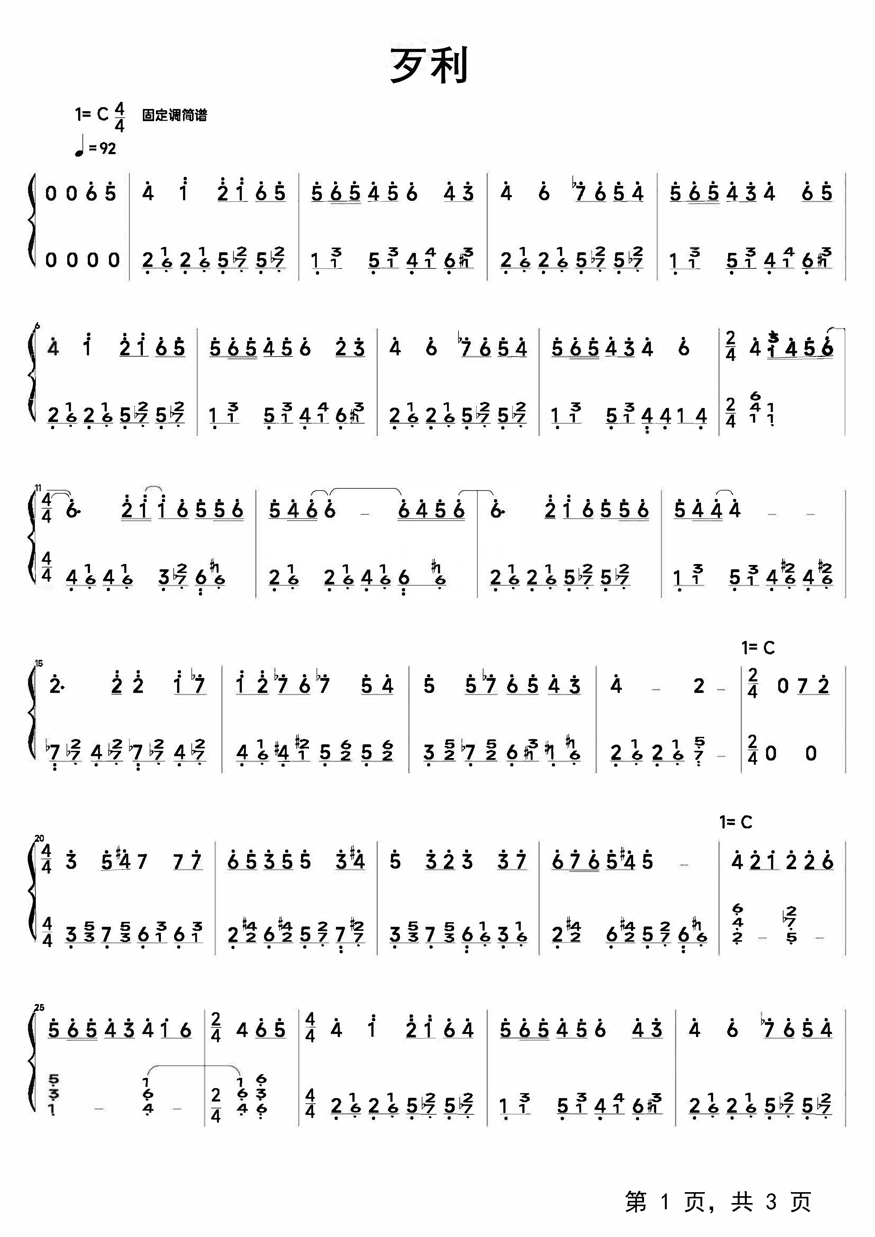 作品分类:流行钢琴简谱