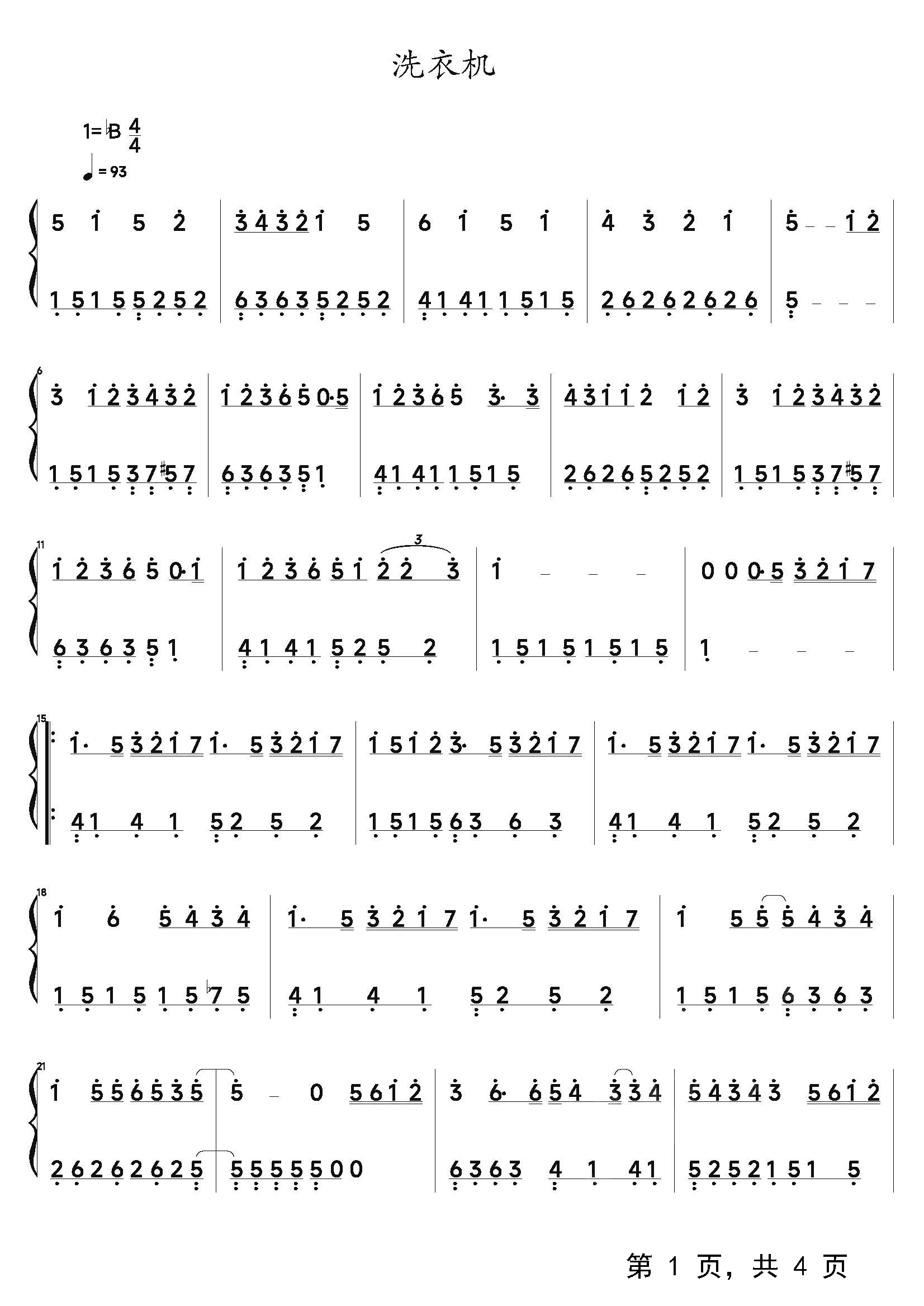洗衣机钢琴谱-朱茵-降B调-流行钢琴简谱
