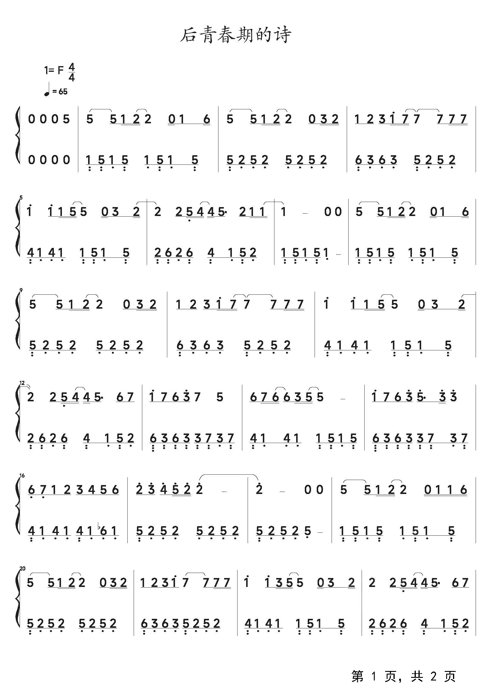 作品分类:流行钢琴简谱