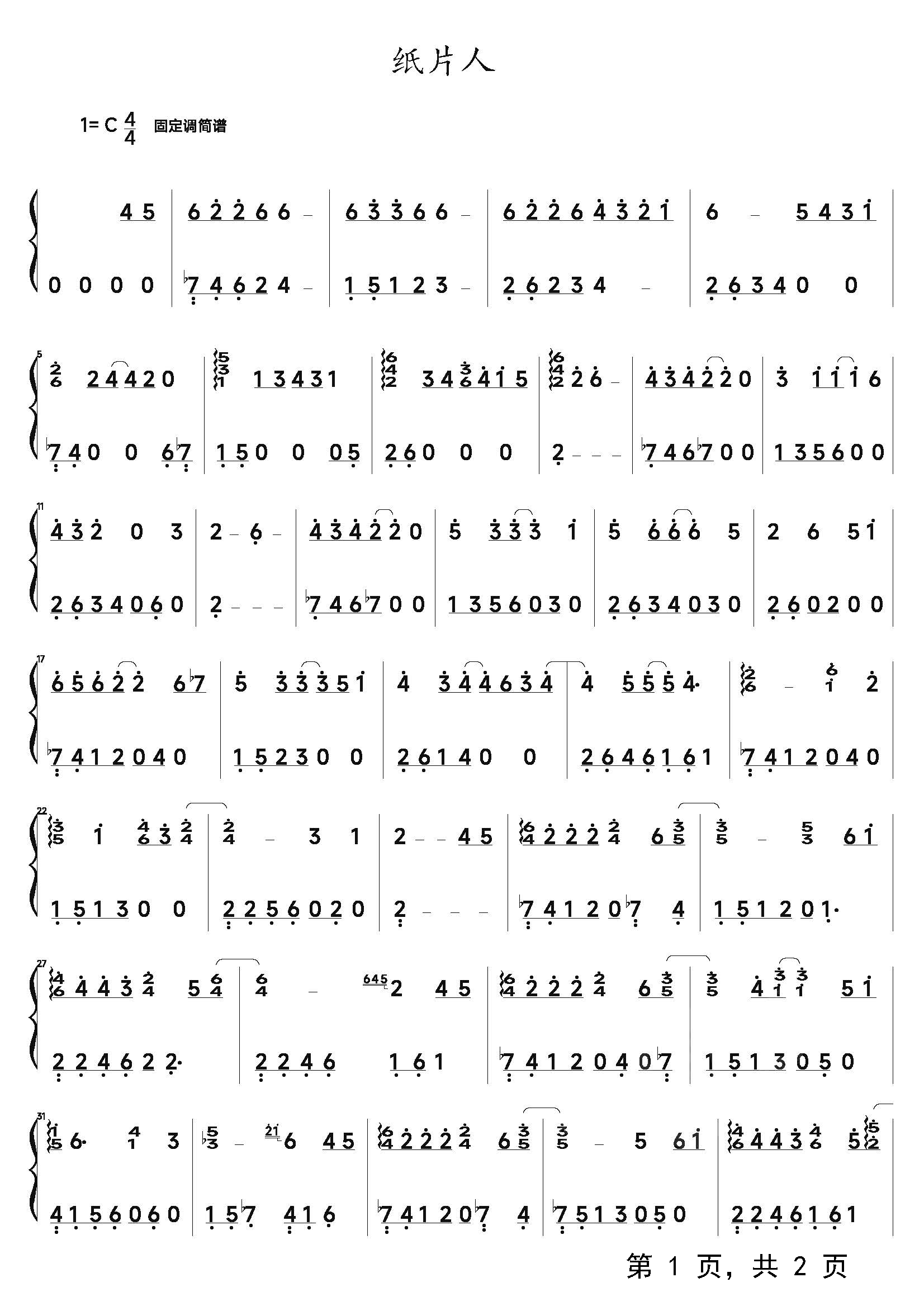 纸片人钢琴谱-吴克群-C调-流行钢琴简谱