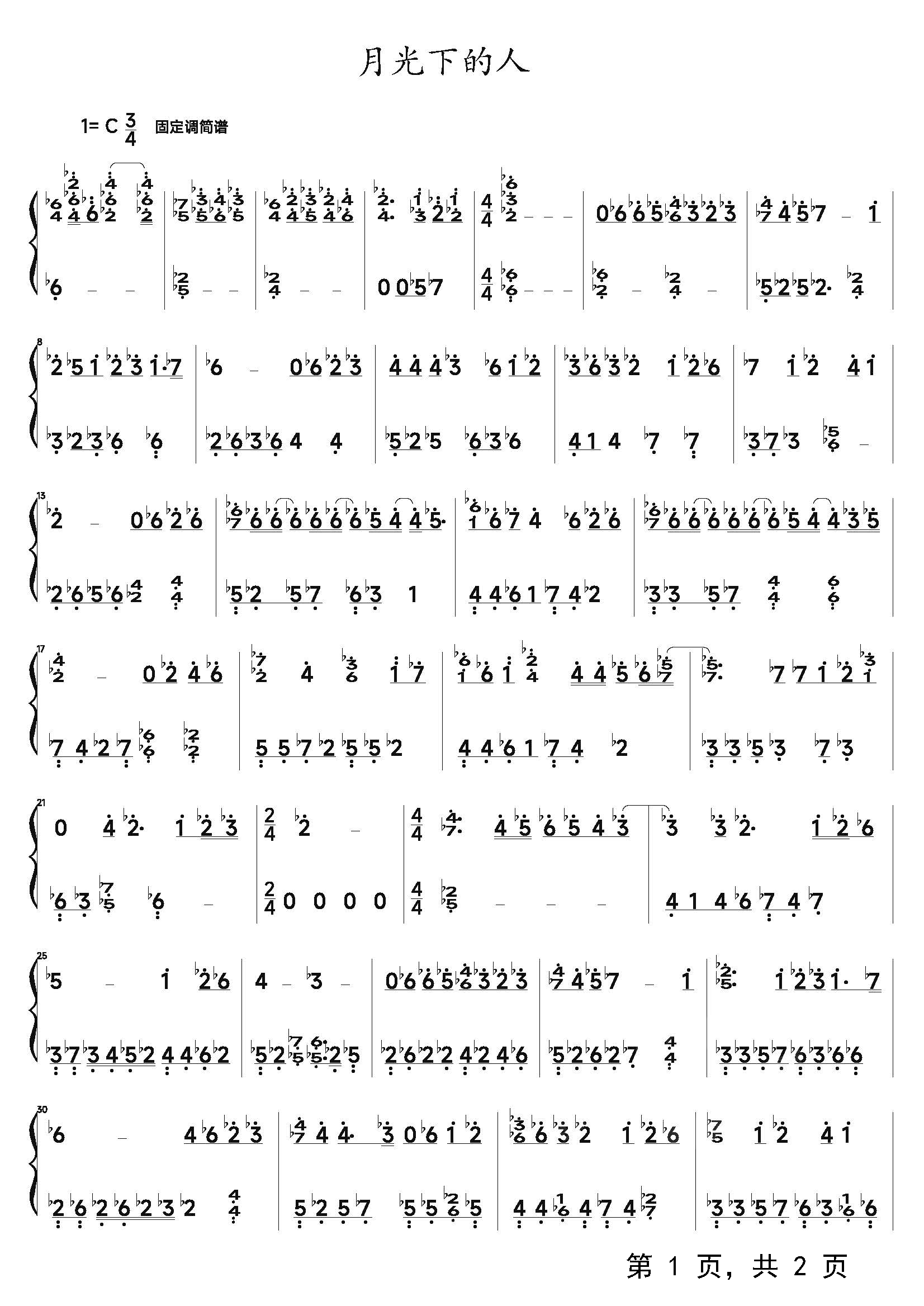 作品分类:流行钢琴简谱