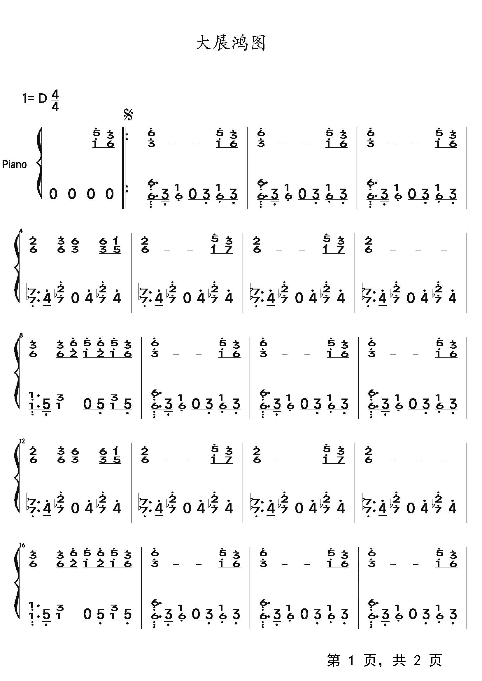 大展鸿图钢琴谱-揽佬、刘夫阳-D调-流行钢琴简谱