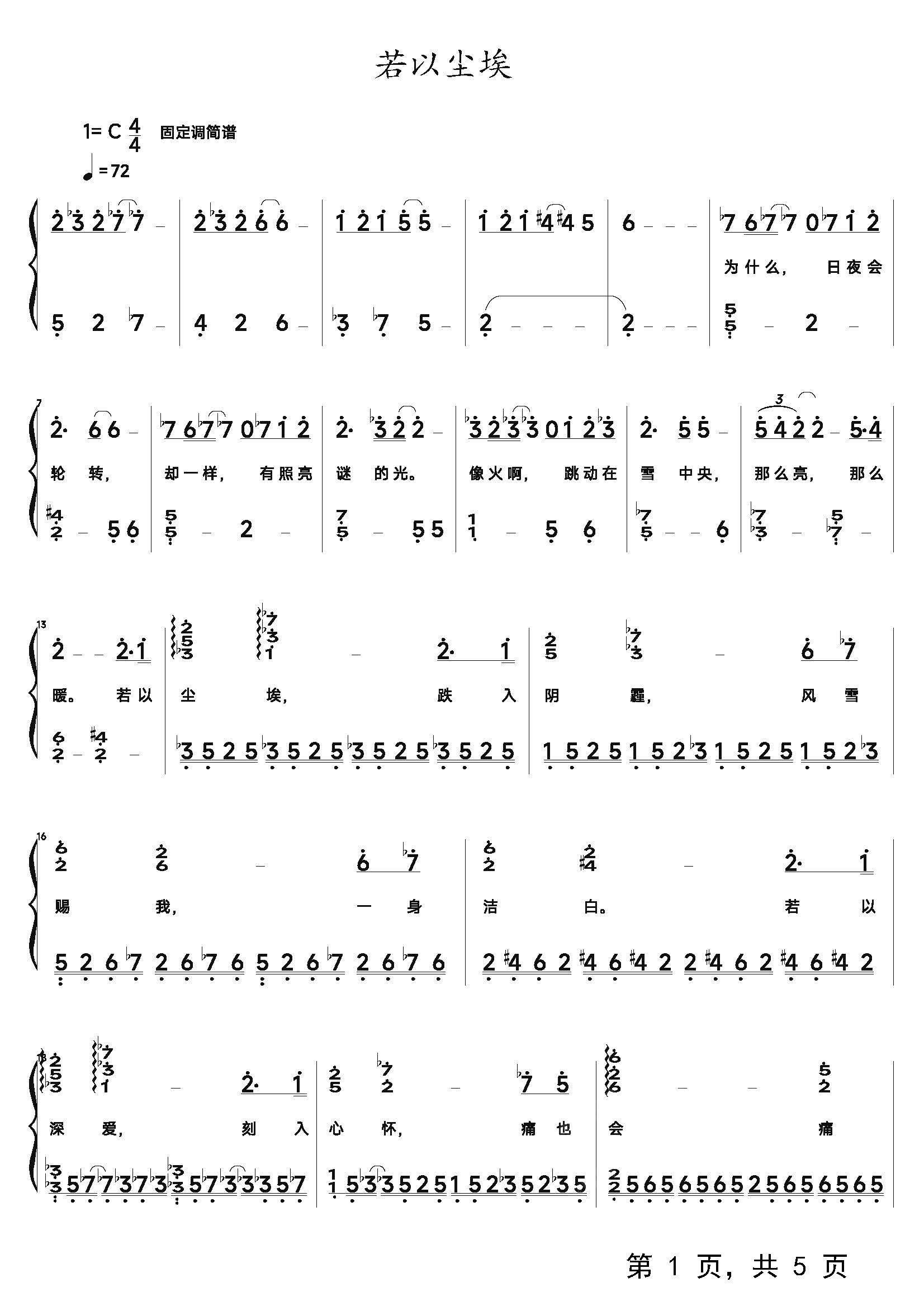 作品分类:流行钢琴简谱