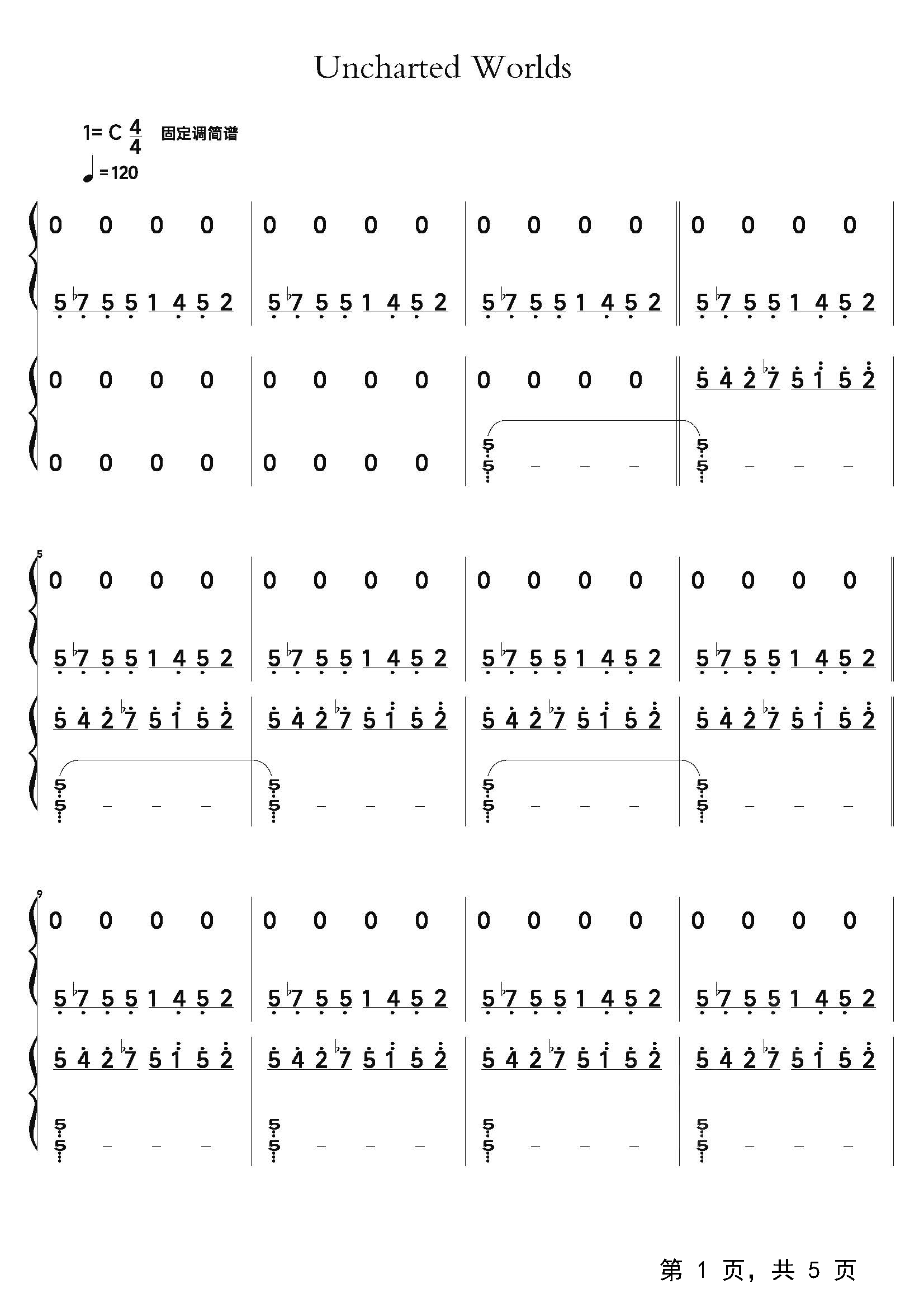 Uncharted-Worlds钢琴谱-Sam Hulick-C调-流行钢琴简谱