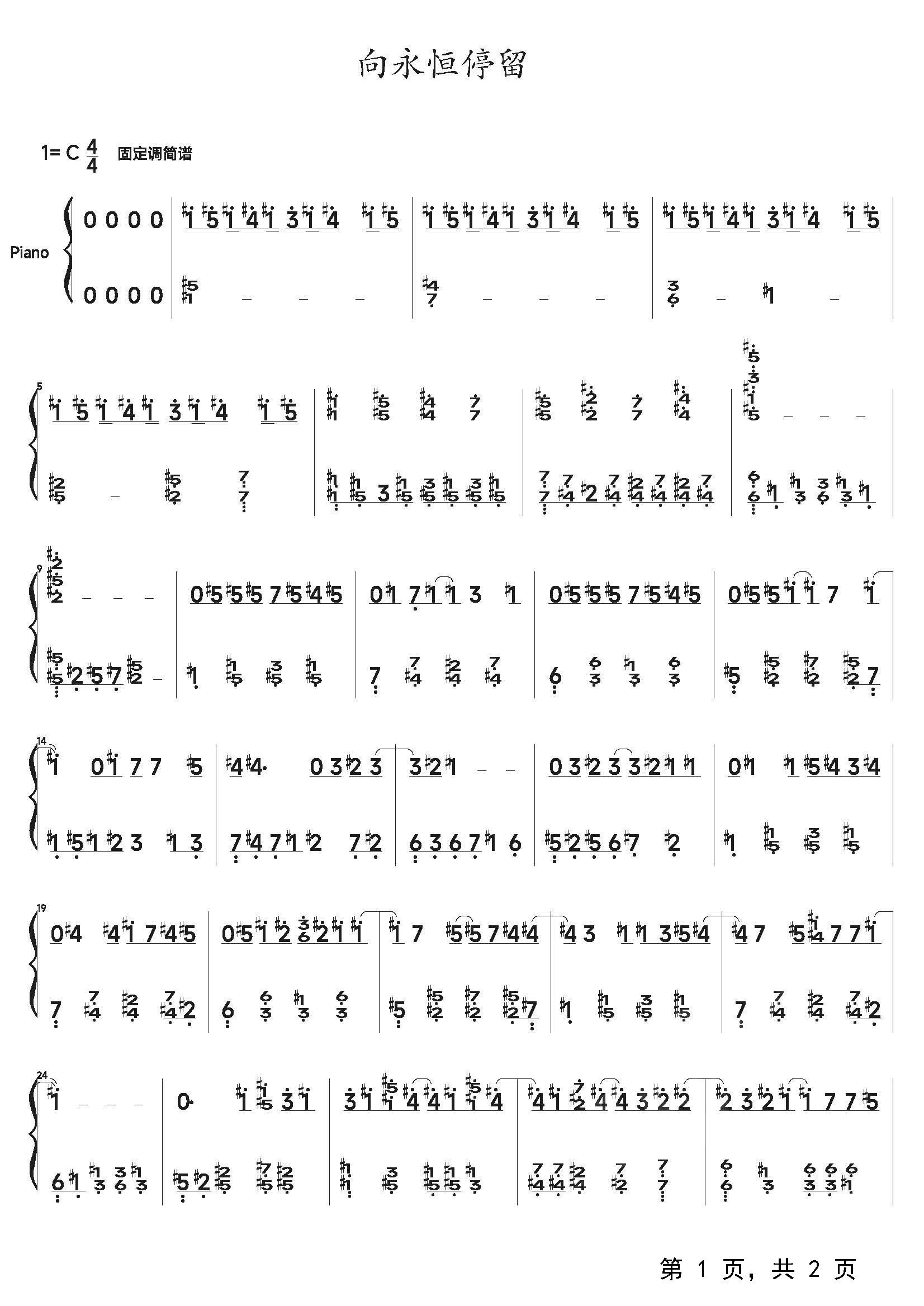 作品分类:流行钢琴简谱