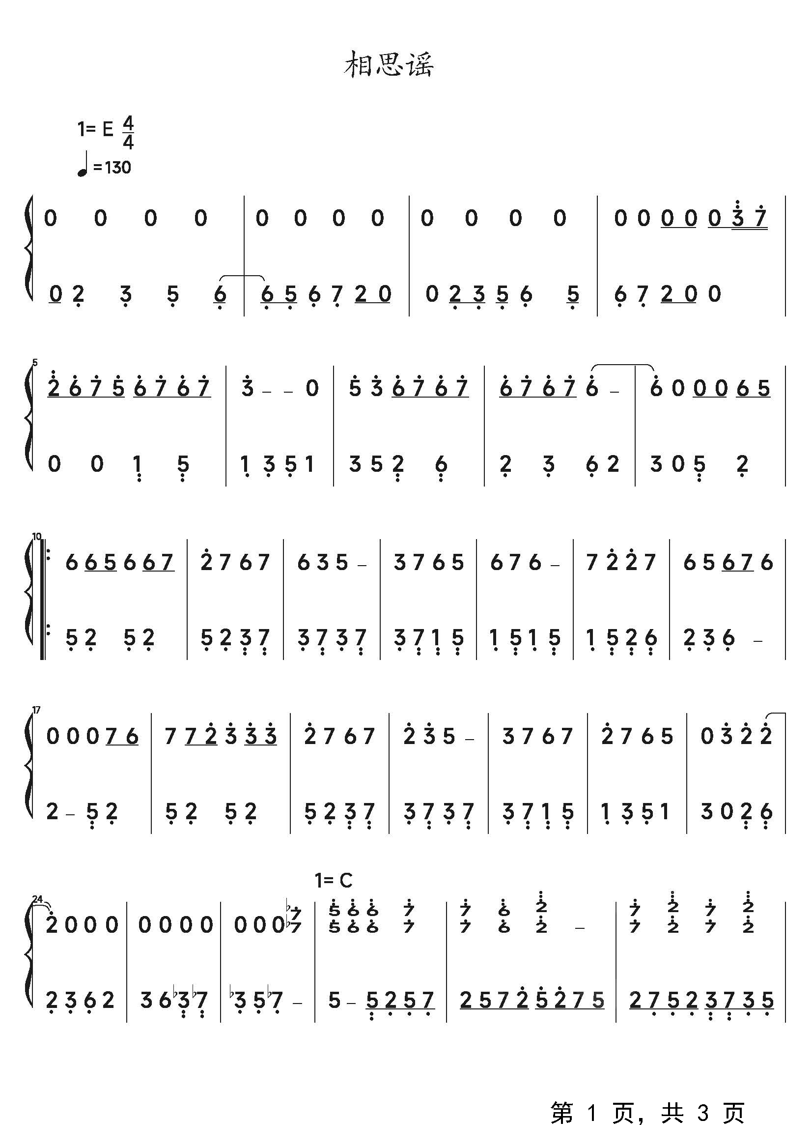 作品分类:流行钢琴简谱