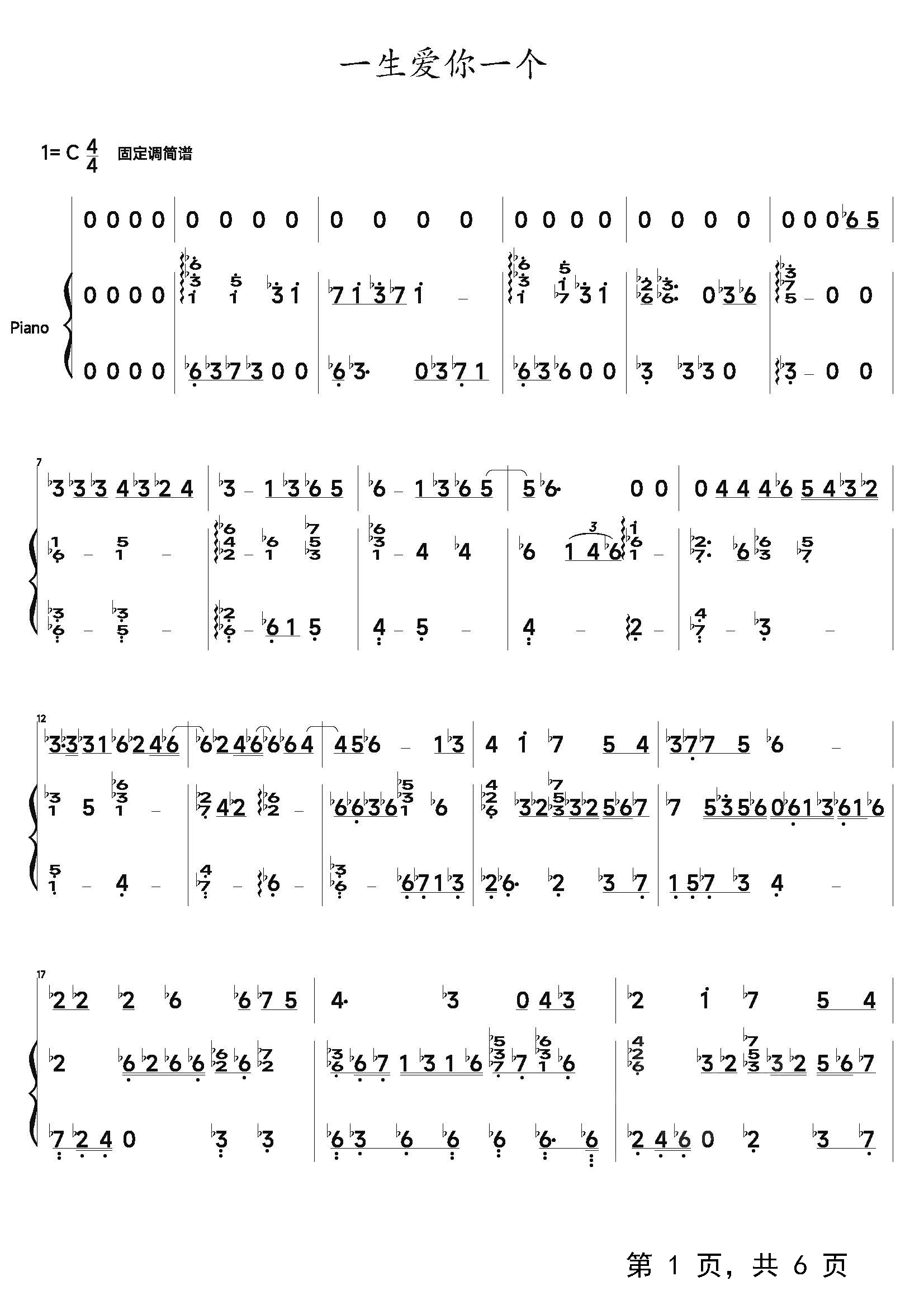 作品分类:流行钢琴简谱