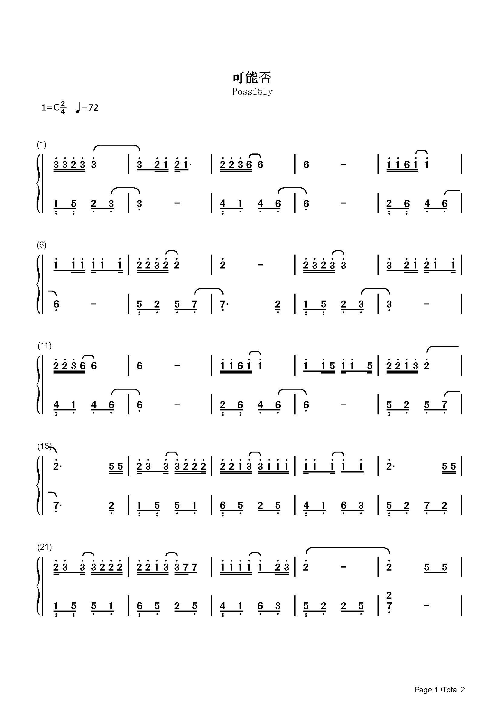 可能否钢琴谱-木小雅-C调 -流行钢琴简谱