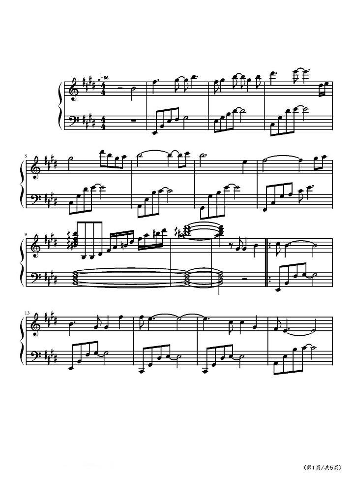 作品分类:流行钢琴五线谱
