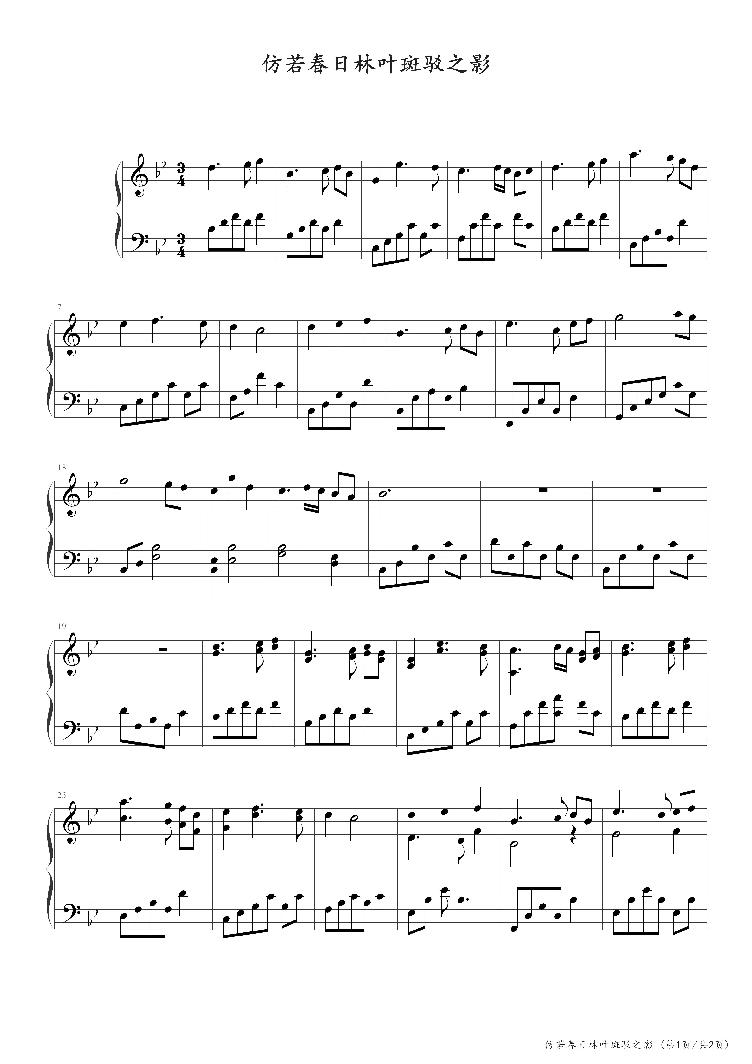 作品分类:流行钢琴五线谱