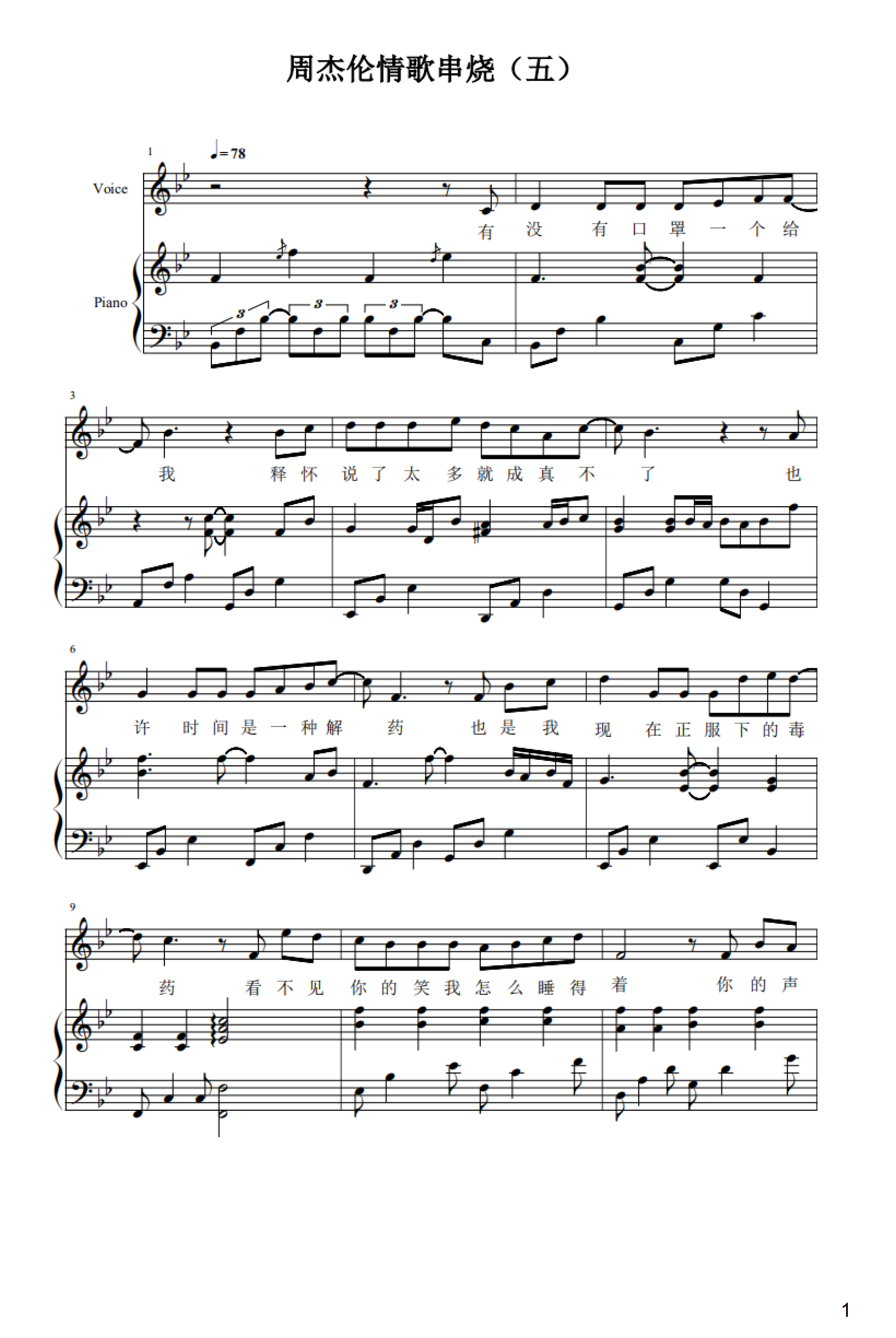 作品分类:钢琴弹唱五线谱