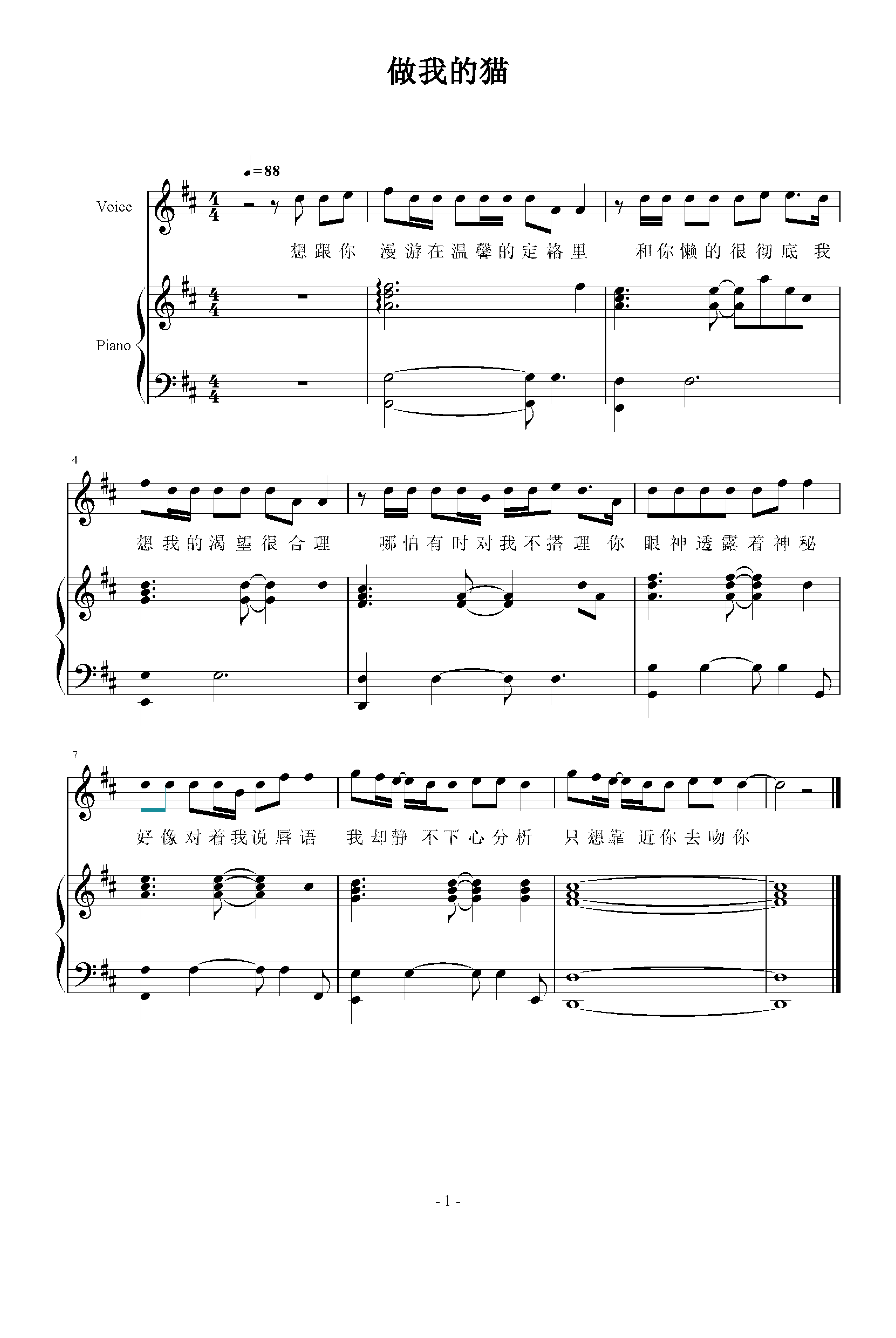 作品分类:钢琴弹唱五线谱