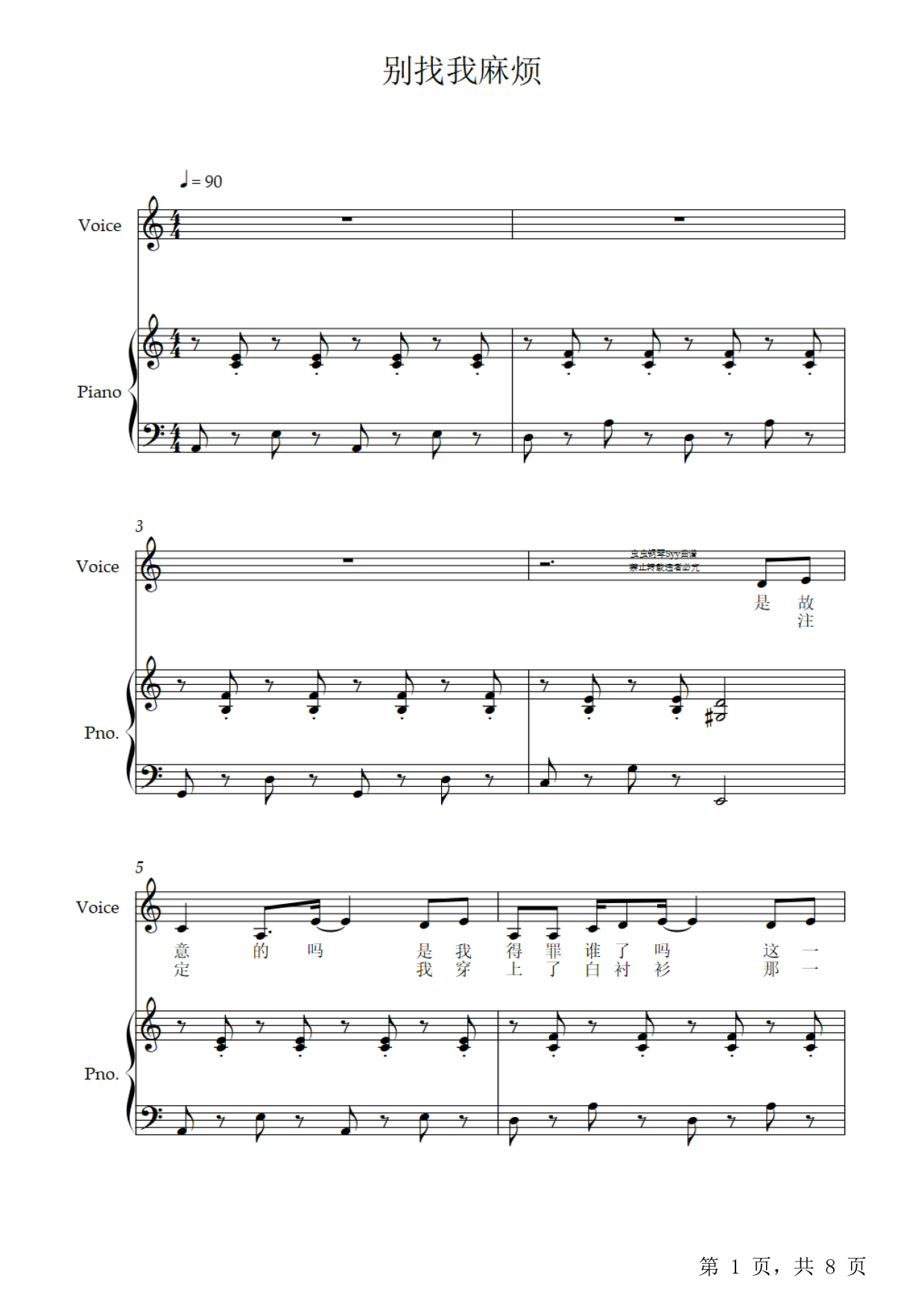 作品分类:钢琴弹唱五线谱