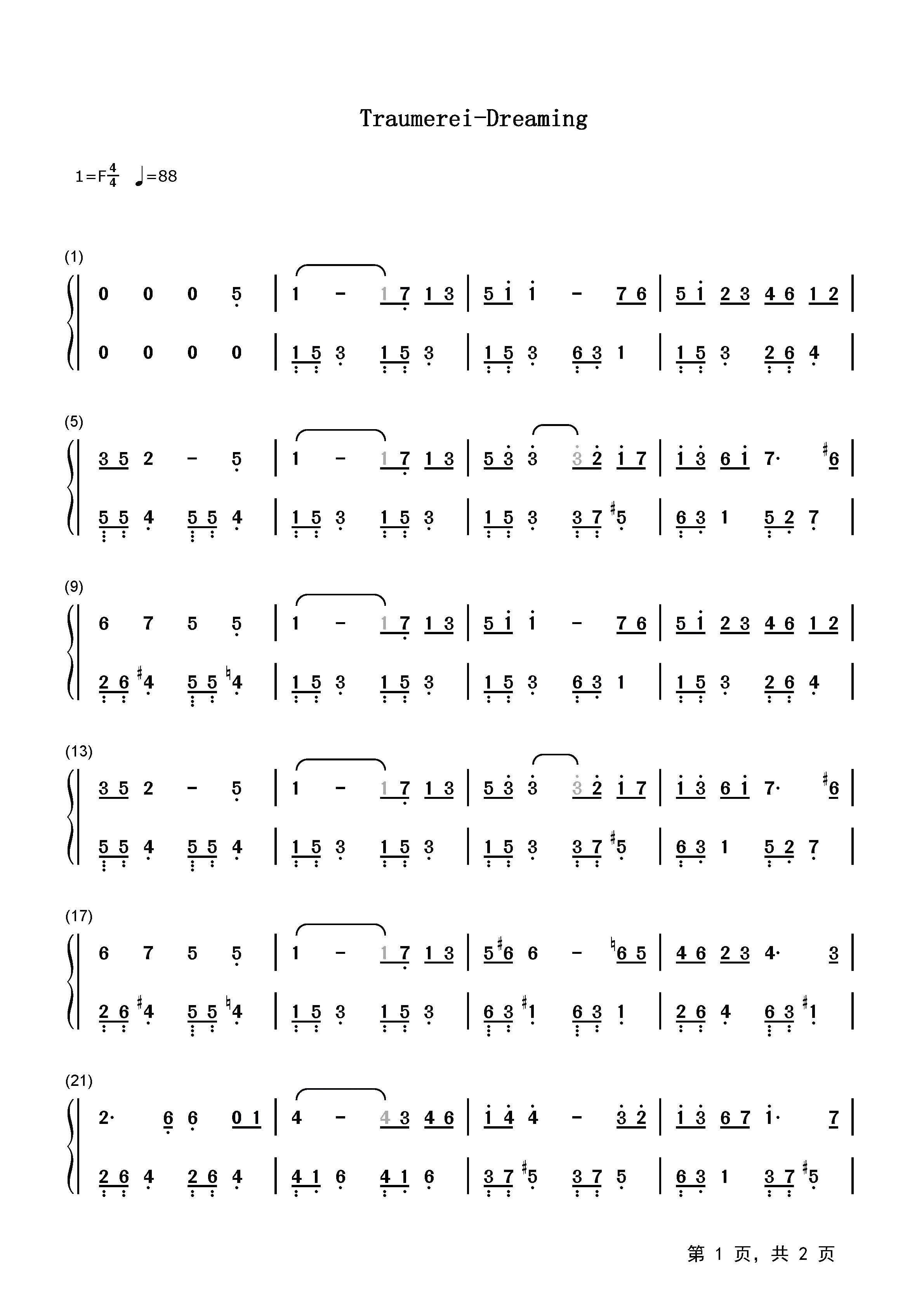 梦幻曲是德国作曲家舒曼所作的曲子。《童年情景》之梦幻曲,完成于1838年,是舒曼所作十三首《童年情景》中的第七首。在《梦幻曲》中,可以够明显觉察到诗歌般层层递进但又有些微妙变化的律动感。 乐曲用单主题三部曲式写成。一般三部曲的第二段,在曲调、性格、节奏上都有所变化,以便前后形成对比。 人们对那四个小节旋律既熟悉又喜爱,那些轻盈融情的歌,是每个聆听此曲的人心中的旋律。它叙述着人们儿时的美丽的梦,也抒发着理想世界的温暖、深远与甜蜜。这支旋律可以响在孩子的摇篮边,也可以在庄严的凯旋行列中奏响,它所具有的高度的概括力和无限宽广的适应性,显示出这个梦幻主题是永恒的,也是不朽的,细腻的音乐表情,丰富的和声语言,引人入胜的表现力,使这首短诗充满了诗情画意,令人百听不厌。