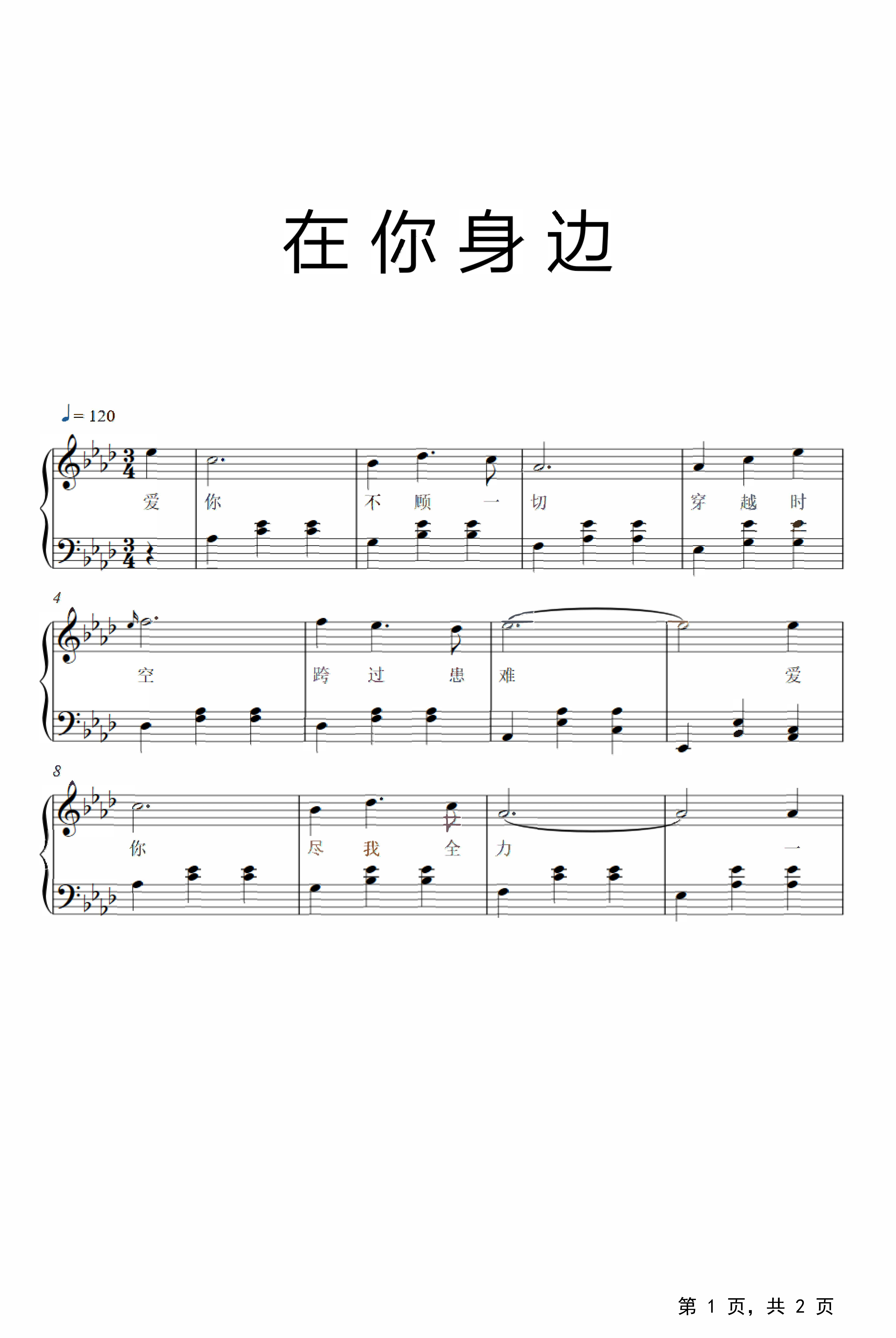 一生爱你一个钢琴谱