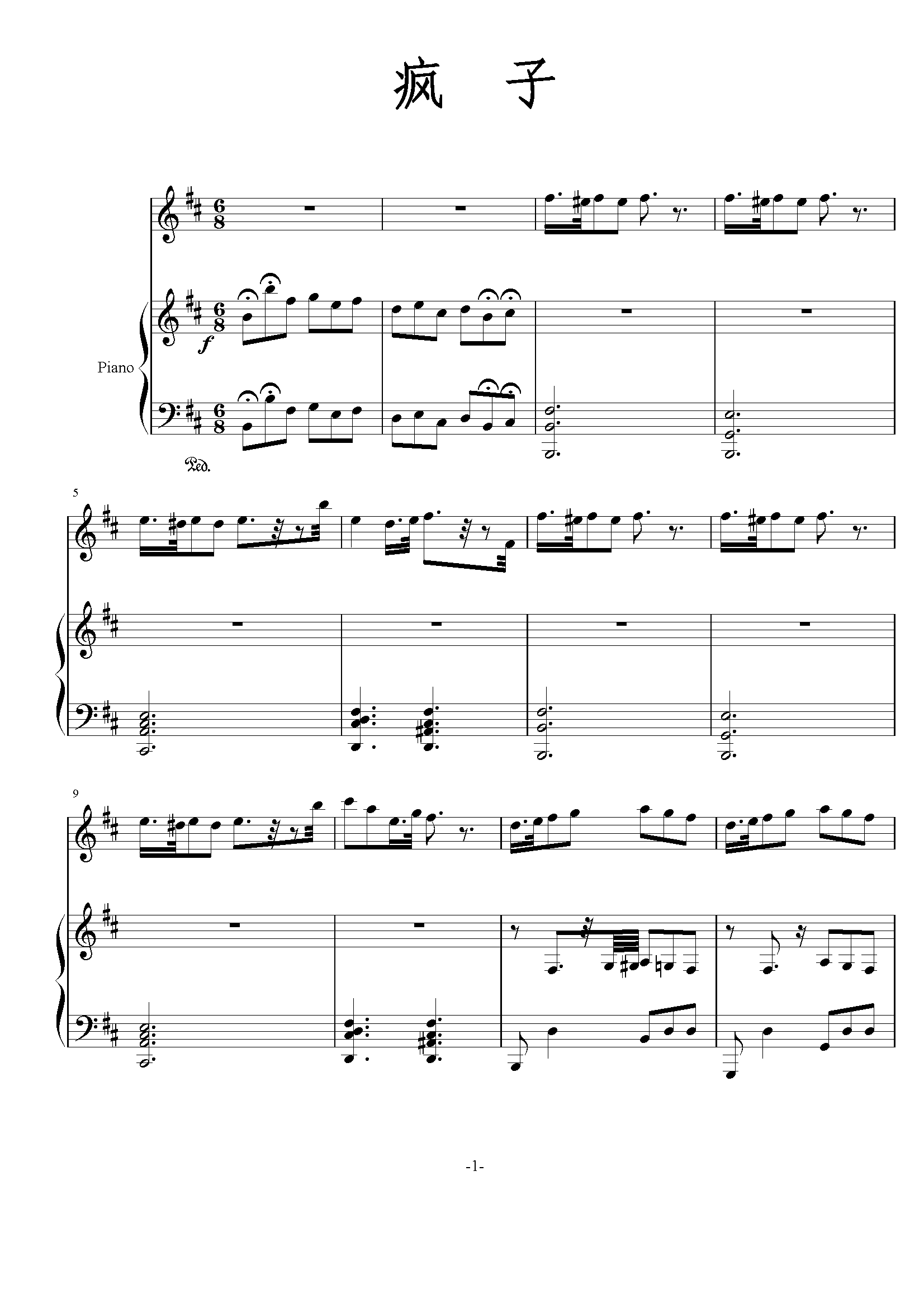 偶然钢琴五线谱
