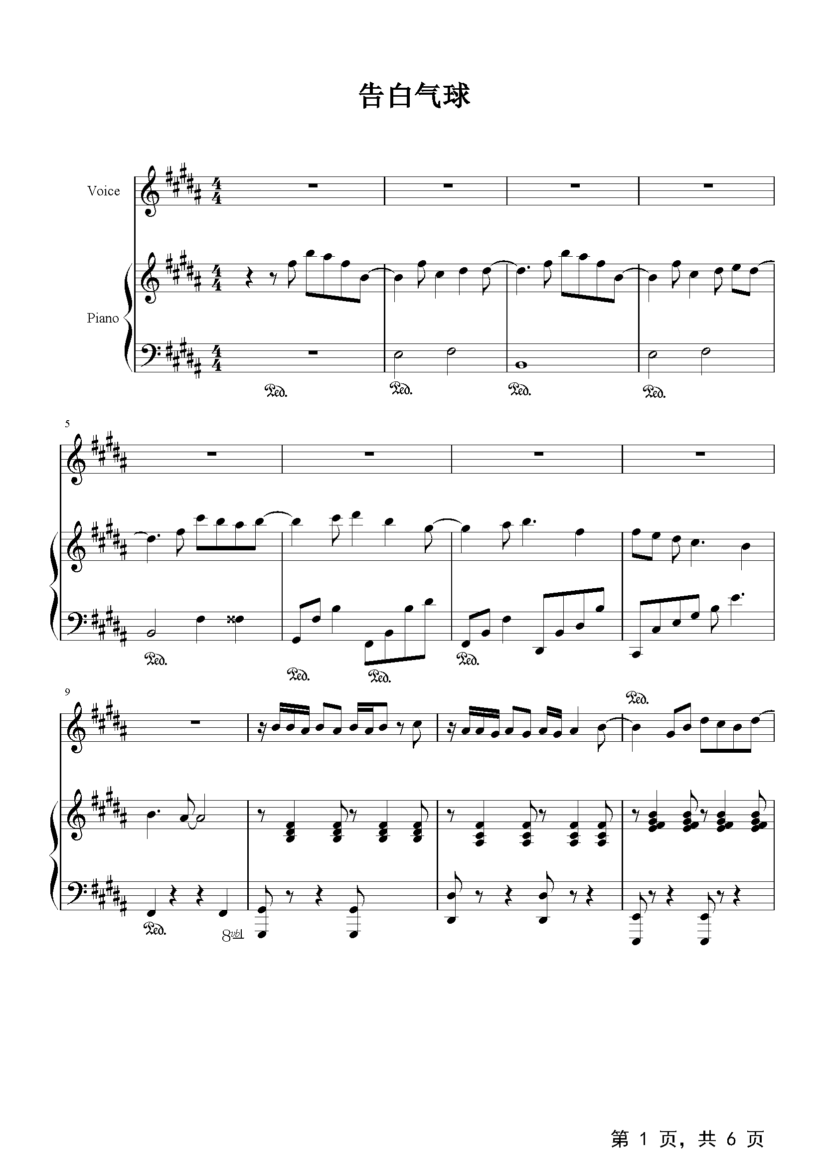 《告白气球》是周杰伦演唱的一首歌曲,本首曲子是B调钢琴歌谱。