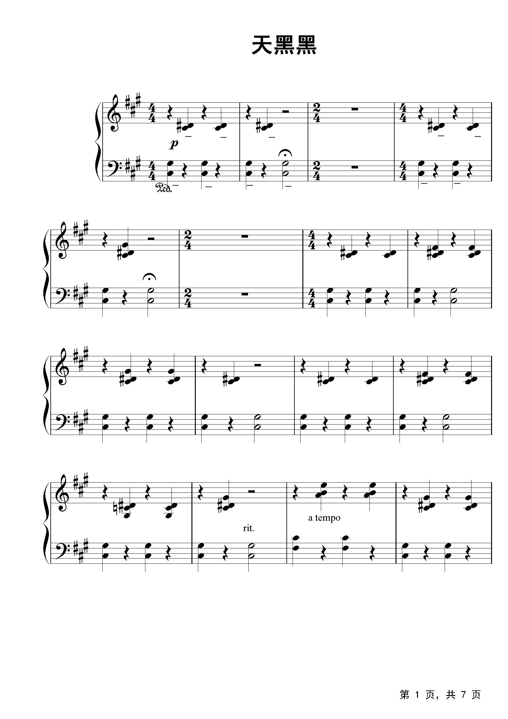 作品分类:流行钢琴五线谱