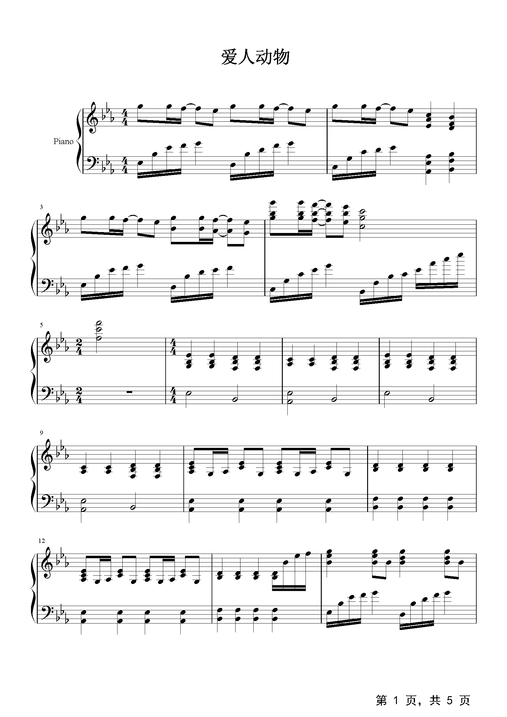《爱人动物》是苏打绿演唱的一首歌曲,本首曲子是降E调钢琴歌谱。