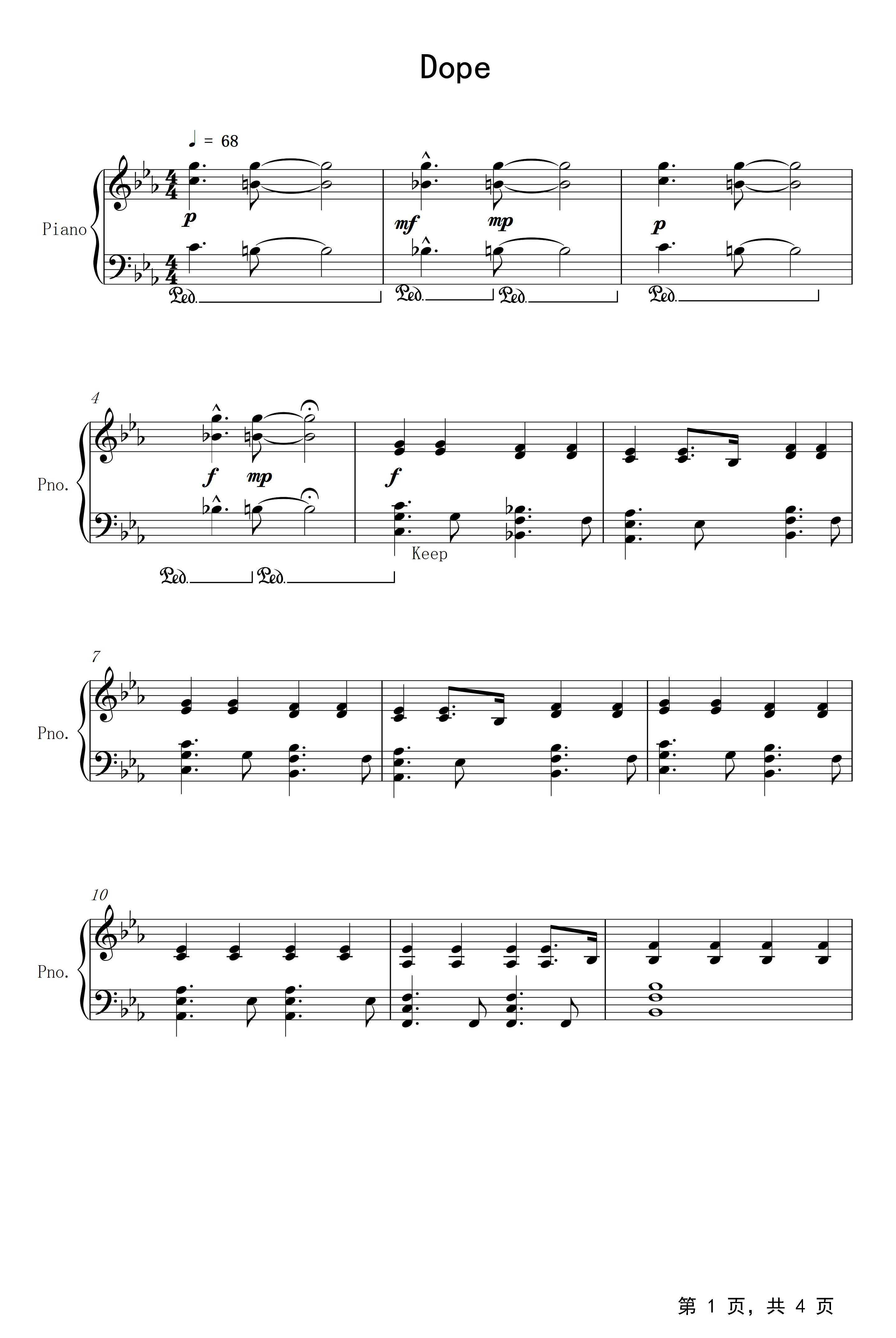 作品分类:流行钢琴五线谱