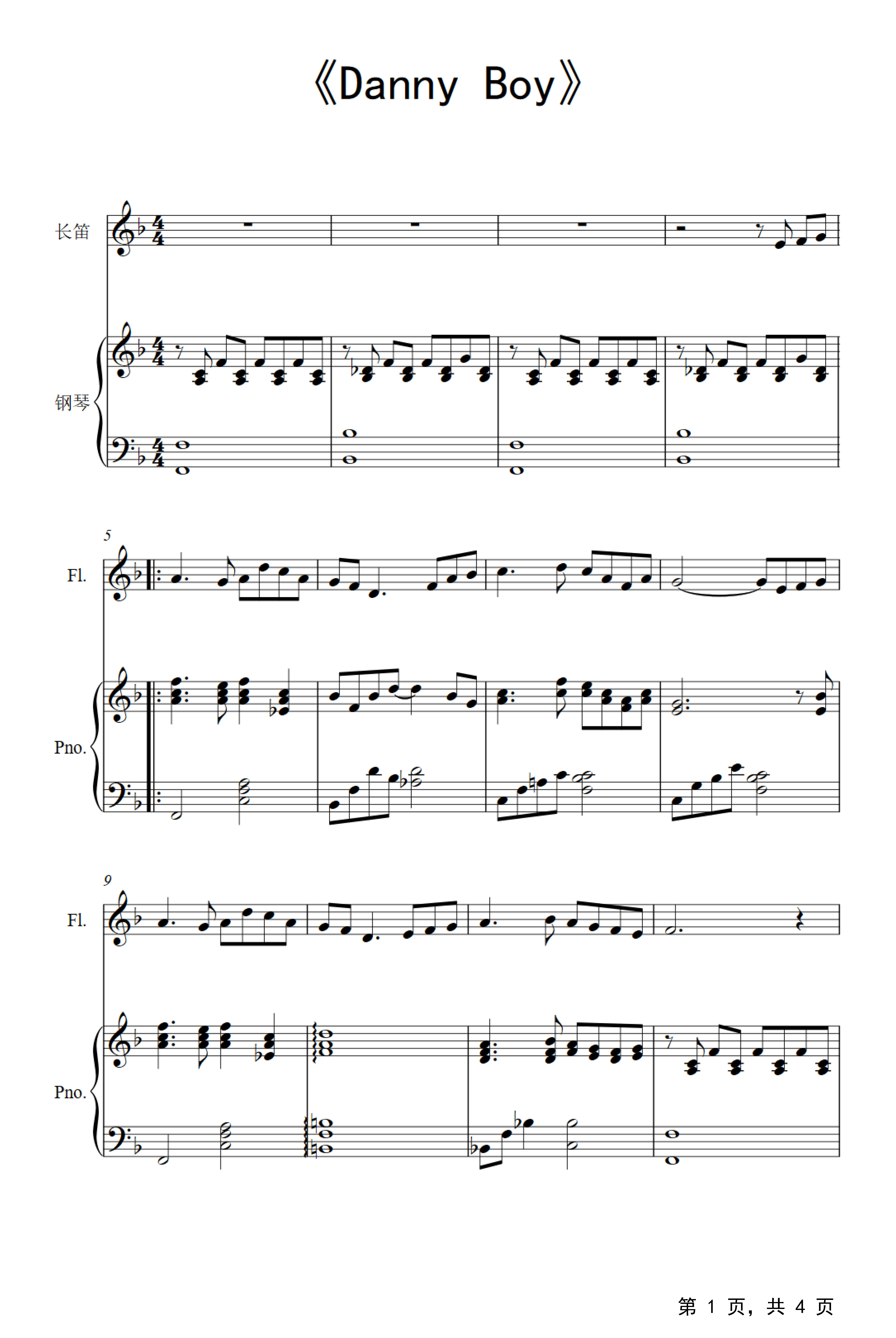 《Danny Boy(丹尼少年)》由爱尔兰民谣《伦敦德里小调》改编,本首曲子是F调钢琴歌谱。