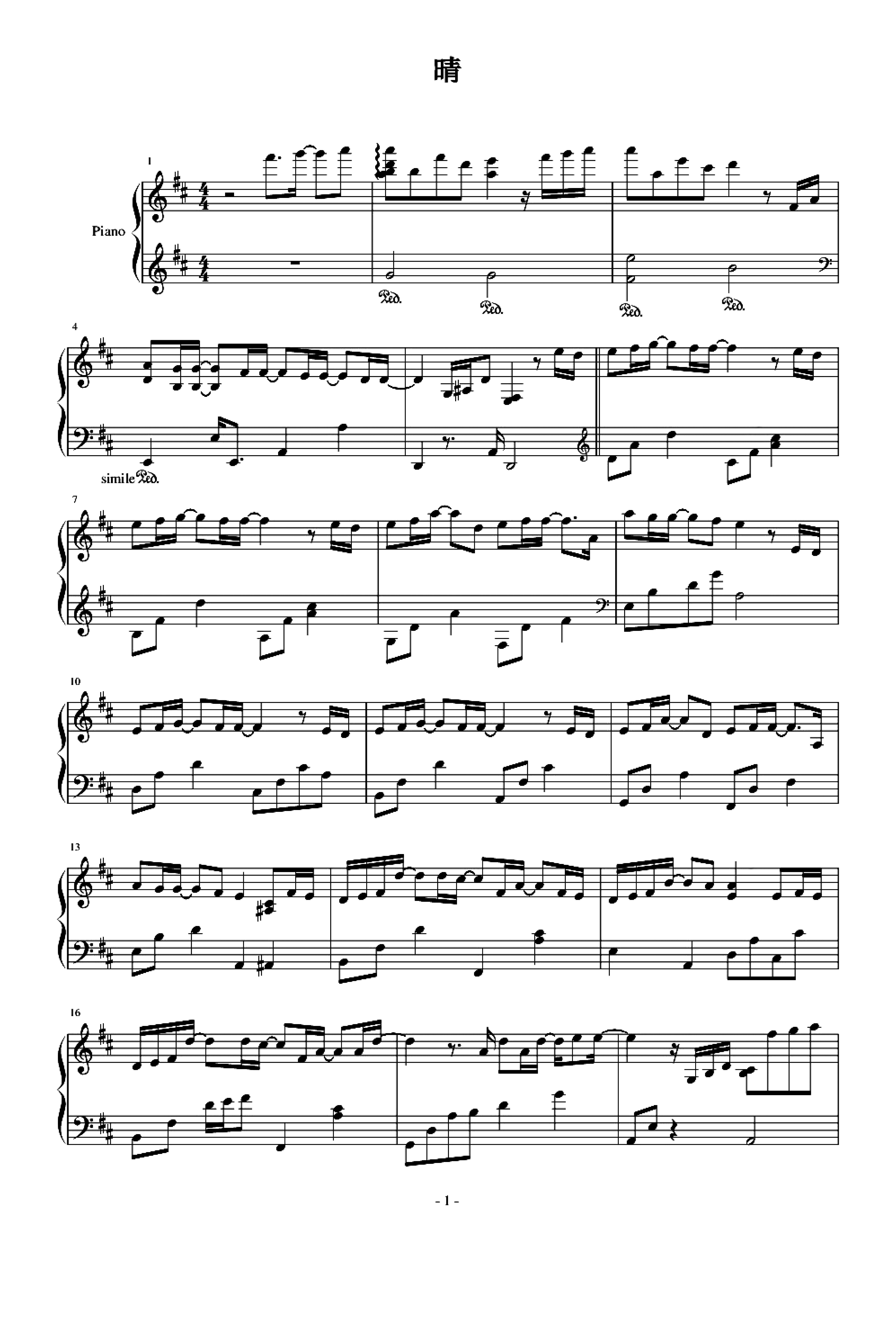 作品曲调:D调