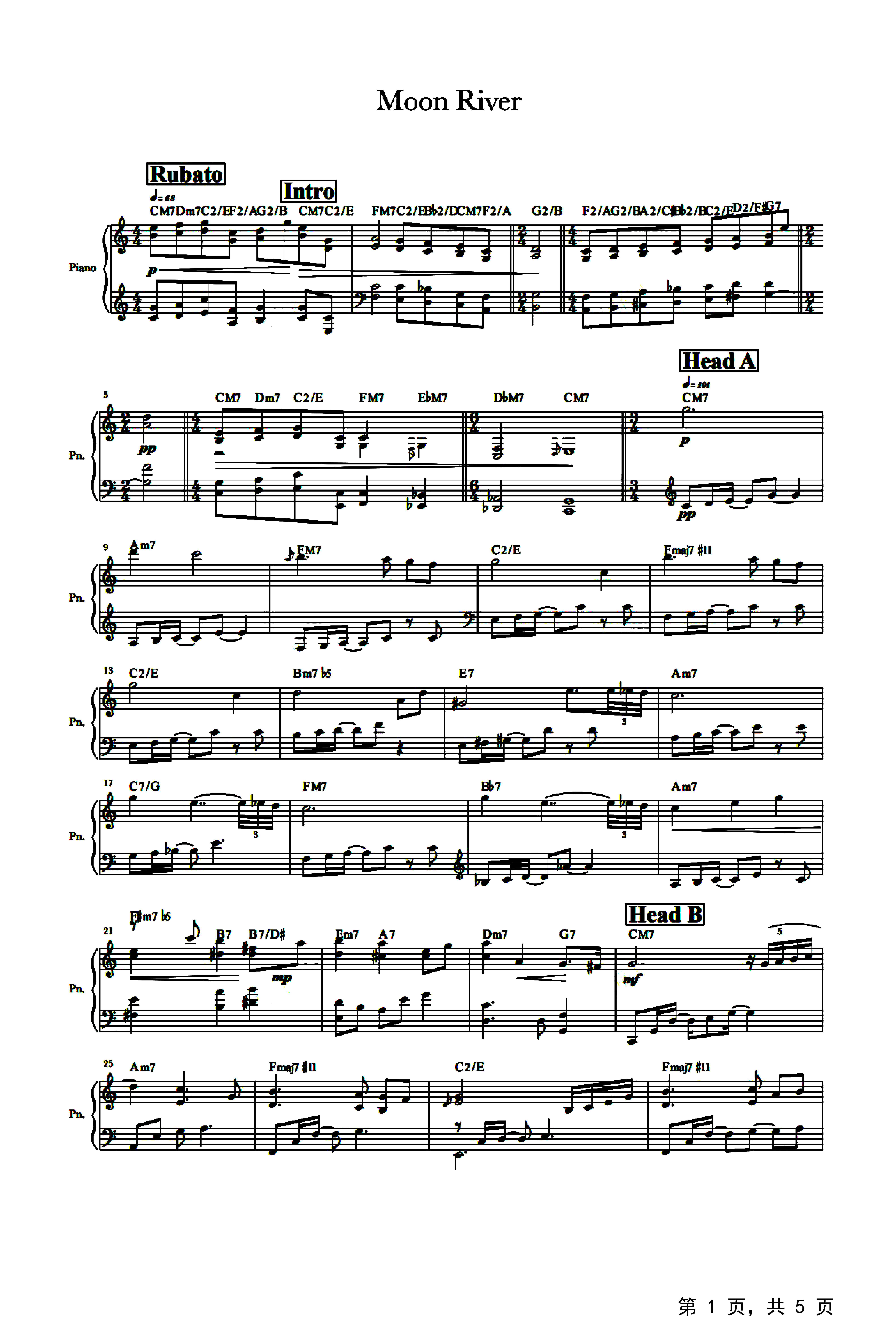 作品分类:流行钢琴五线谱