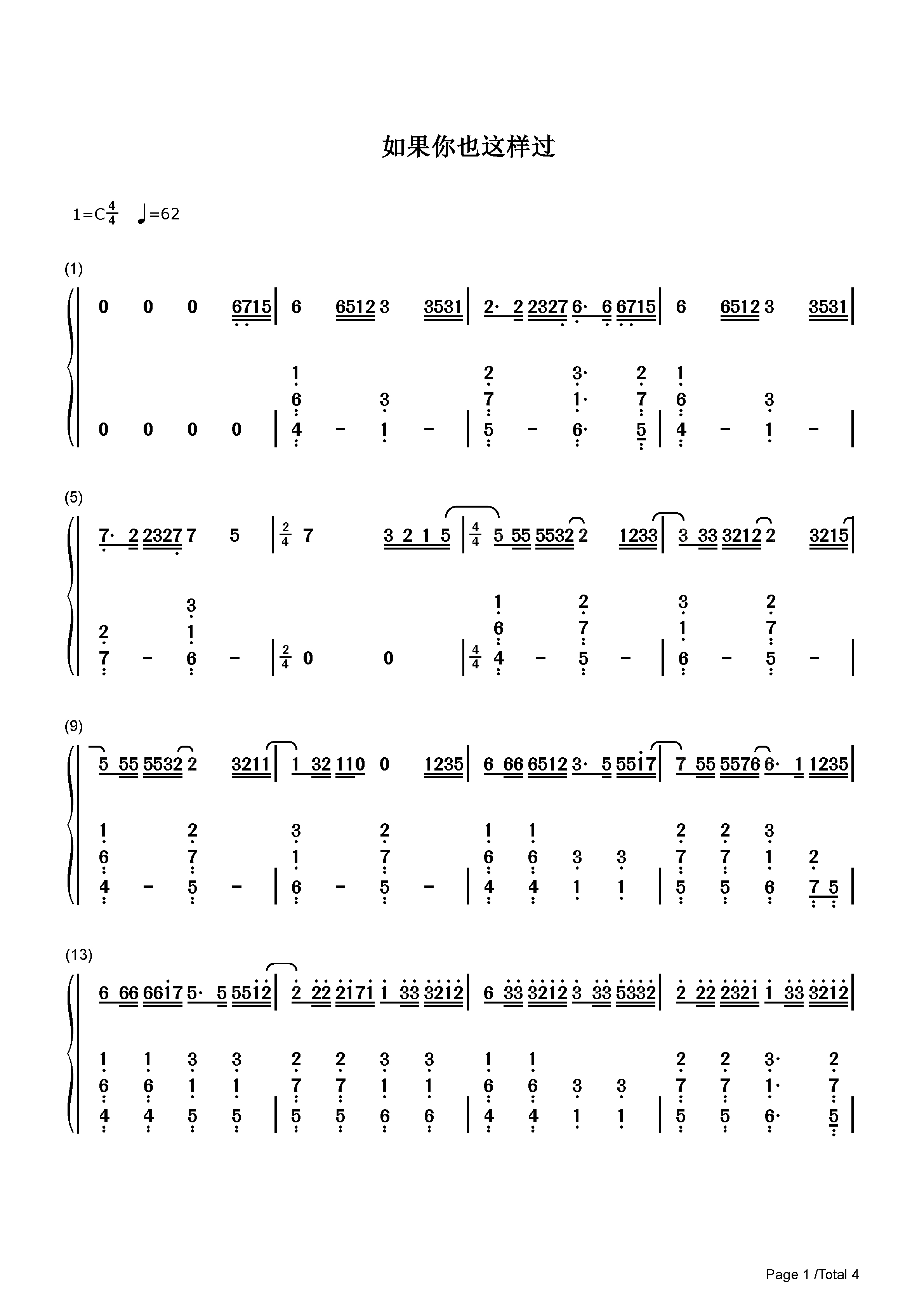 作品分类:流行钢琴简谱