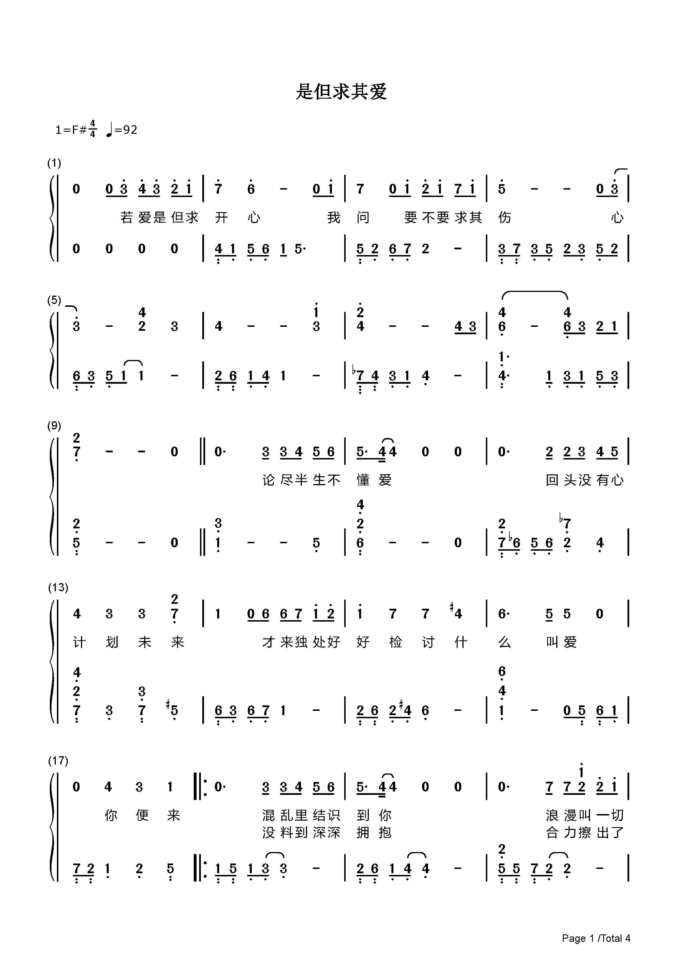 陈奕迅的新歌《是但求起爱》,亦如往昔的温暖和深情,初听很美,听懂了才知大伤感,因为那时已是曲终人。听歌听的是旋律,但是看的却是歌词。这首《是但求其爱》是以粤语首发,因此这首歌也有两种不同的解法。如果按照粤语,“是但”和“求其”都是随便的意思,歌名类似于随便爱;如果按照国语的解释,应为“是,但求其爱”。这是爱情两种不同的态度,到底如何理解,或许就看听歌的人了。歌曲引子以慢版的纯钢琴音乐伴着演唱者如独白般唱出“若爱是但求开心/我问/要不要求其伤心”。配合紧接的弦乐伴奏,就似凄美的爱情。编曲简单却满载铺排,情感演绎逐层推进下,以最坦率真诚的声音,唱出爱情的苦思考量。