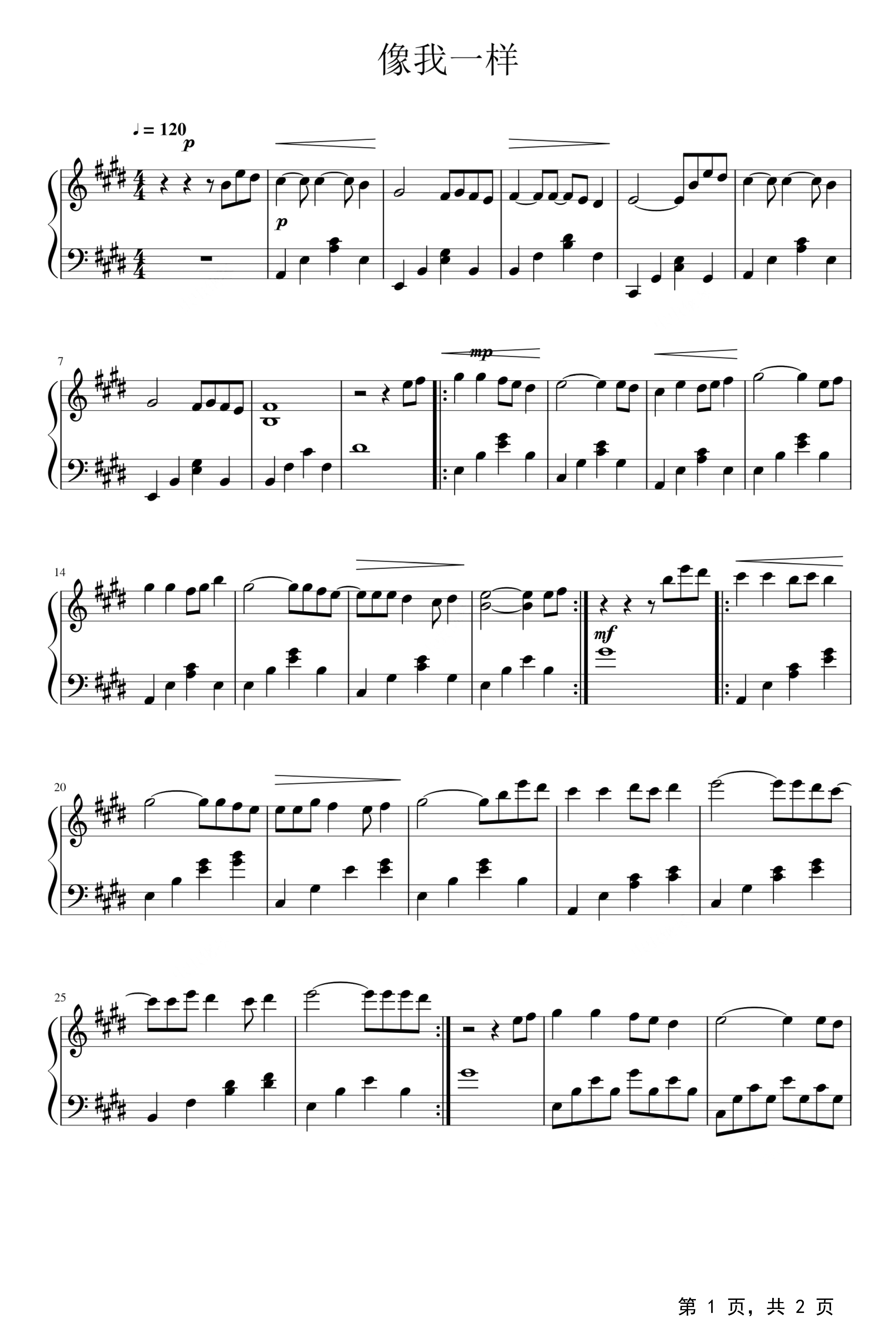 作品分类:流行钢琴五线谱