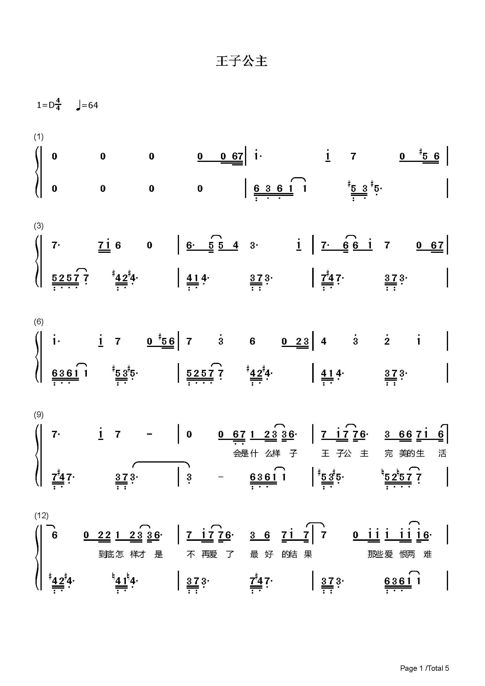 作品分类:流行钢琴简谱