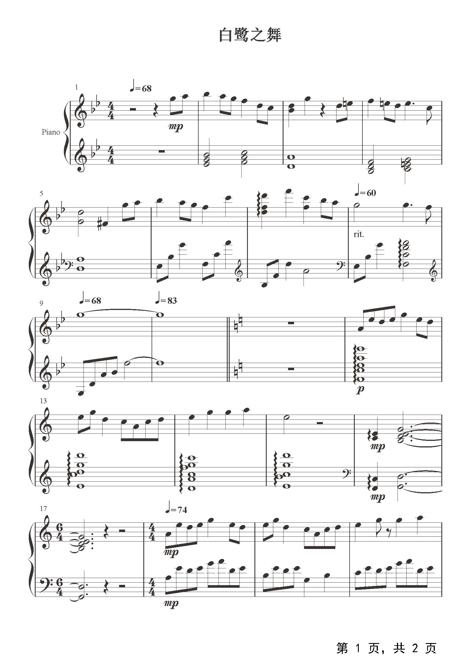 作品分类:流行钢琴五线谱