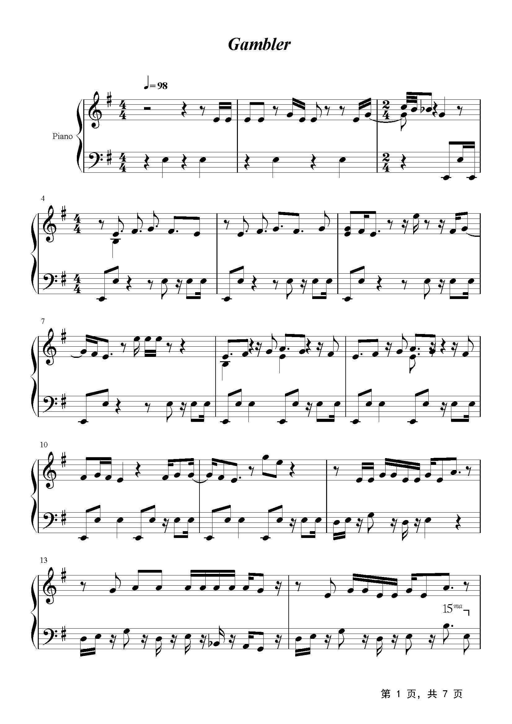 作品分类:流行钢琴五线谱