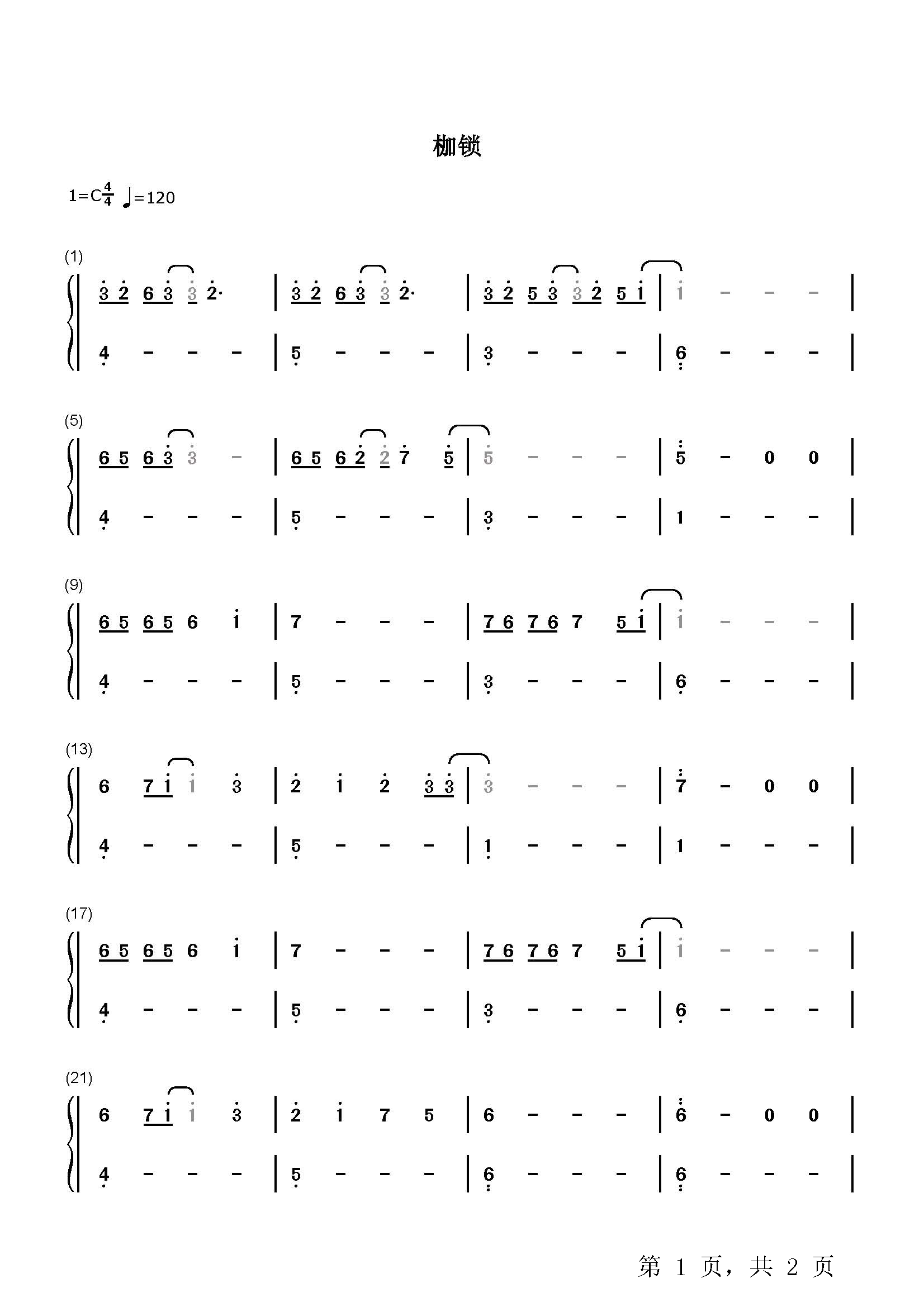 作品分类:流行钢琴简谱