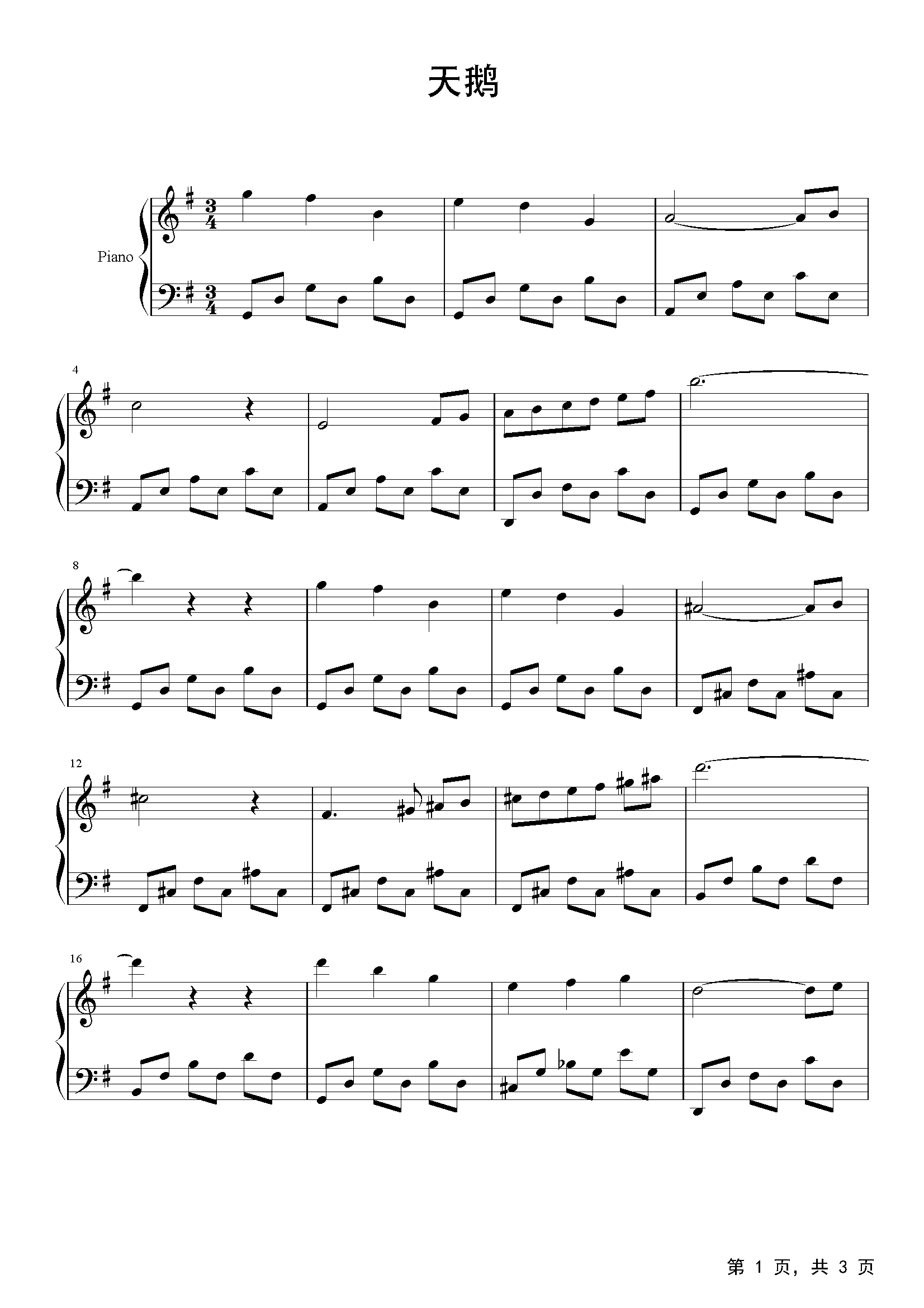 天鹅由大提琴独奏,两架钢琴伴奏。是三段式结构,出自圣桑的管弦乐《动物狂欢节》。《动物狂欢节》由十四首独立的短小乐曲组成,(一)《狮王进行曲》;(二)《公鸡和母鸡》;(三)《野马》;(四)《乌龟》;(五)《大象》;(六)《袋鼠》,(七)《水族馆》;(八)《长耳人》;(九)《林中杜鹃》;(十)《大鸟笼》;(十一)《钢琴家》;(十二)《化石》;(十三)《天鹅》。《天鹅》是第十三首,它不仅是一首大家所熟悉的脍灸入口的名曲,也是作者在这部作品中唯一允许在他生前叫人演出的乐曲,被视作圣桑的代表作品,这首大提琴曲被改编成各种乐器的独奏曲,甚至被改编为芭蕾舞《天鹅之死》。