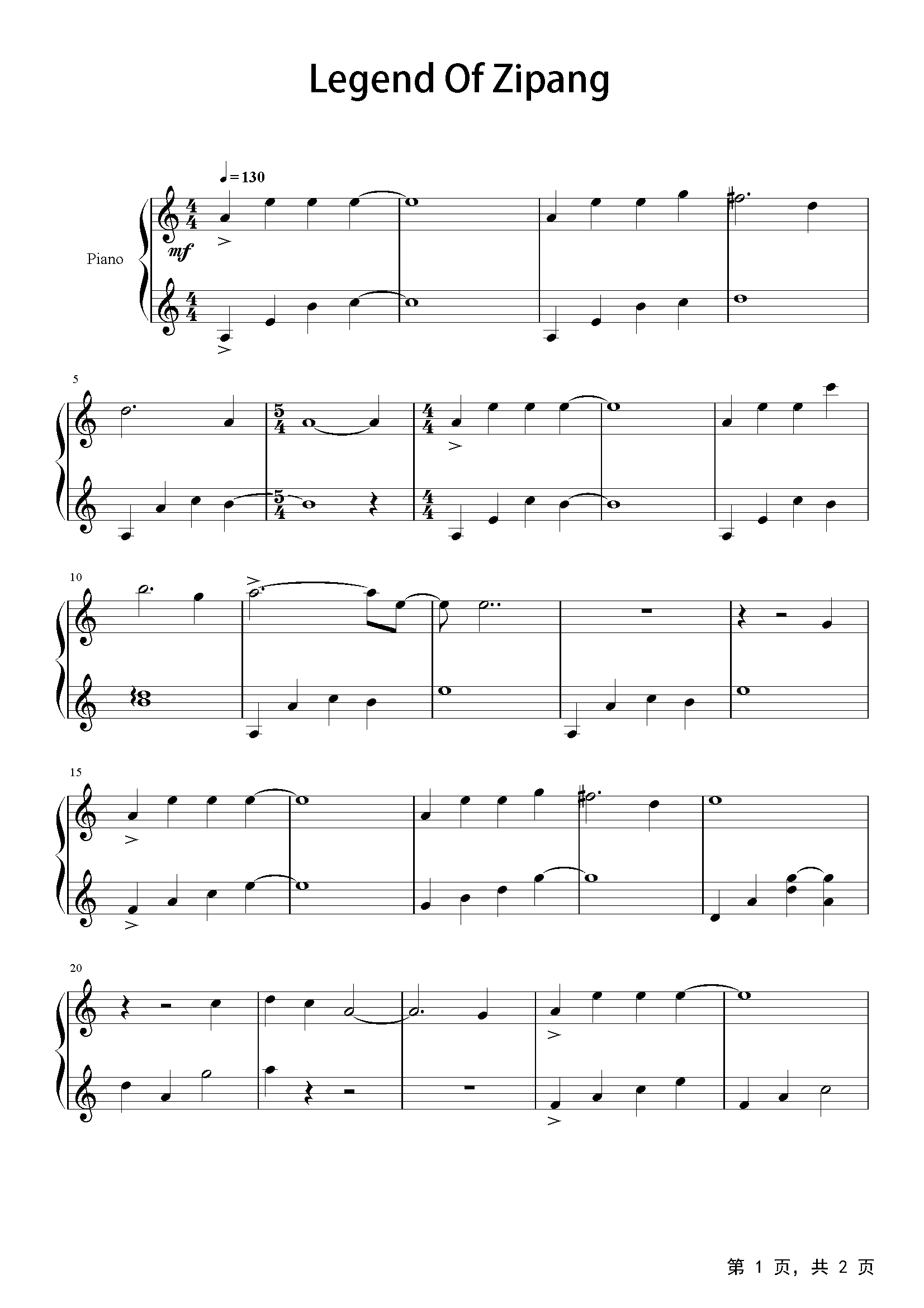 作品分类:流行钢琴五线谱